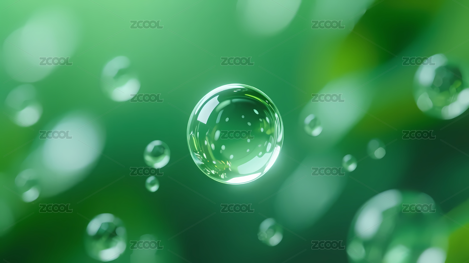 绿色渐变背景清晰水滴