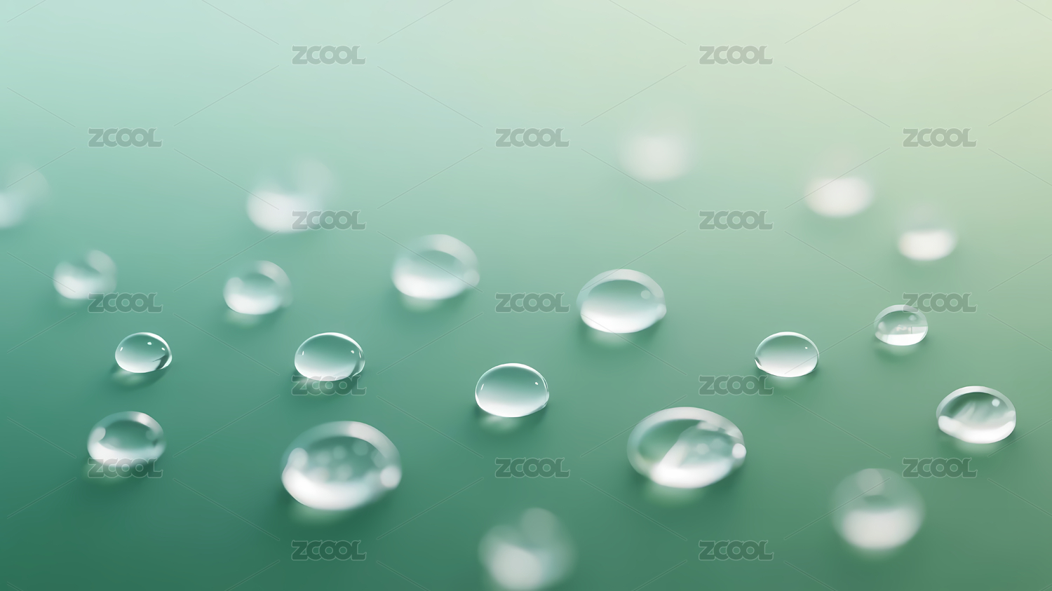 浅绿背景下透明水珠