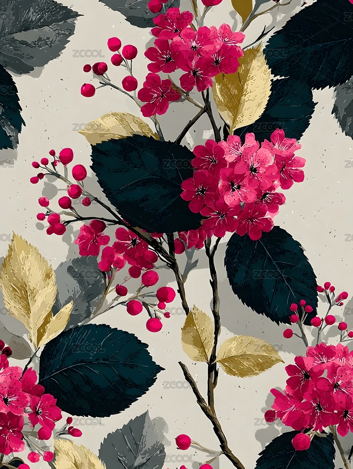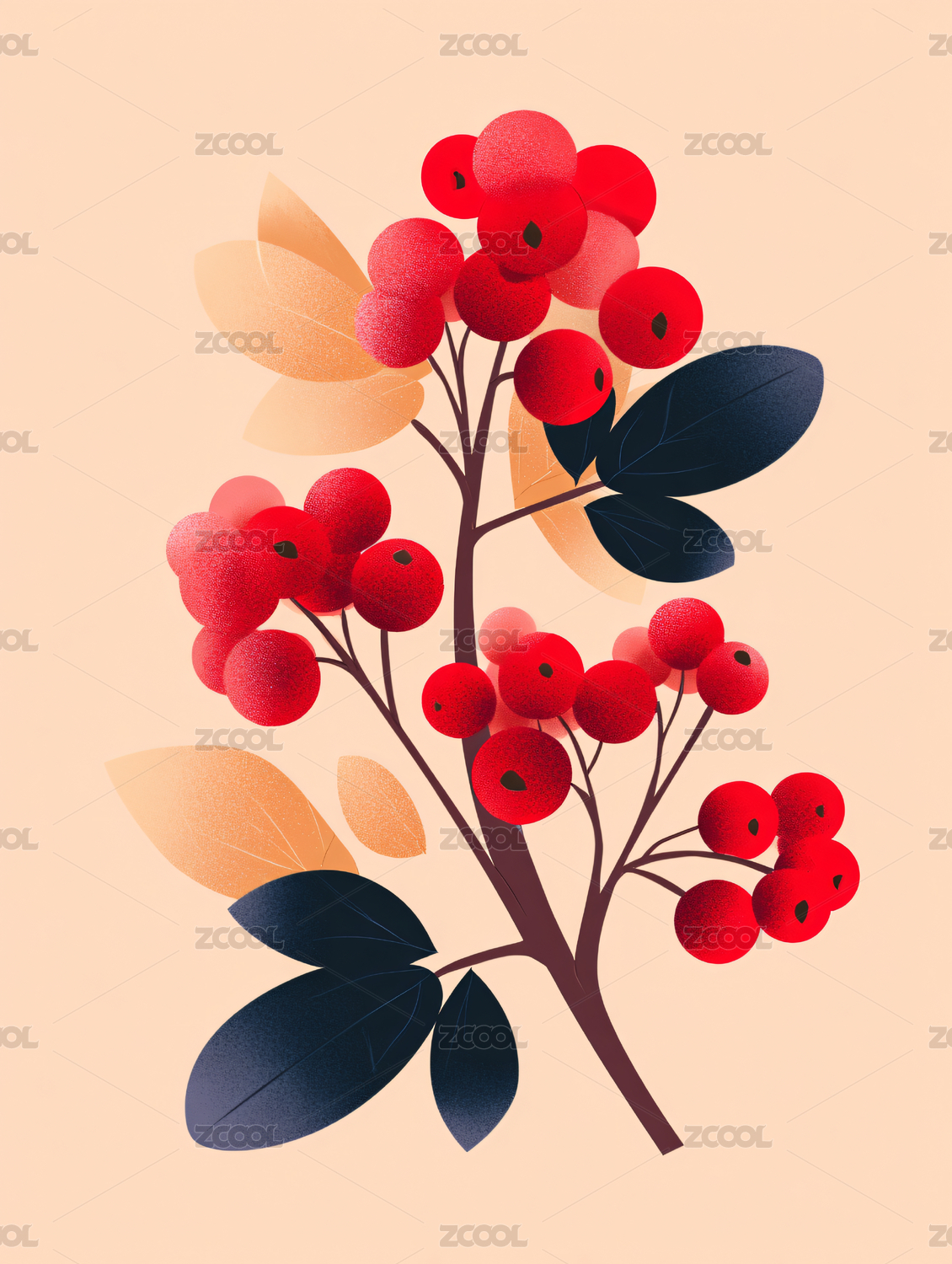 数码复古水彩秋天叶子浆果装饰抽象海报背景