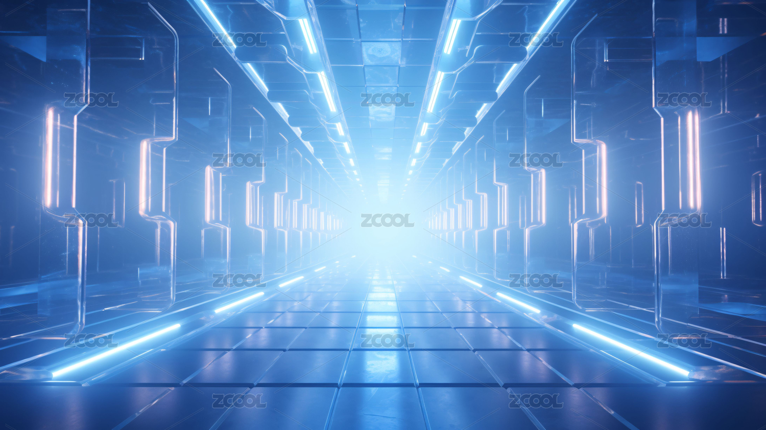 3D渲染科幻延伸蓝色未来科技感空间场景