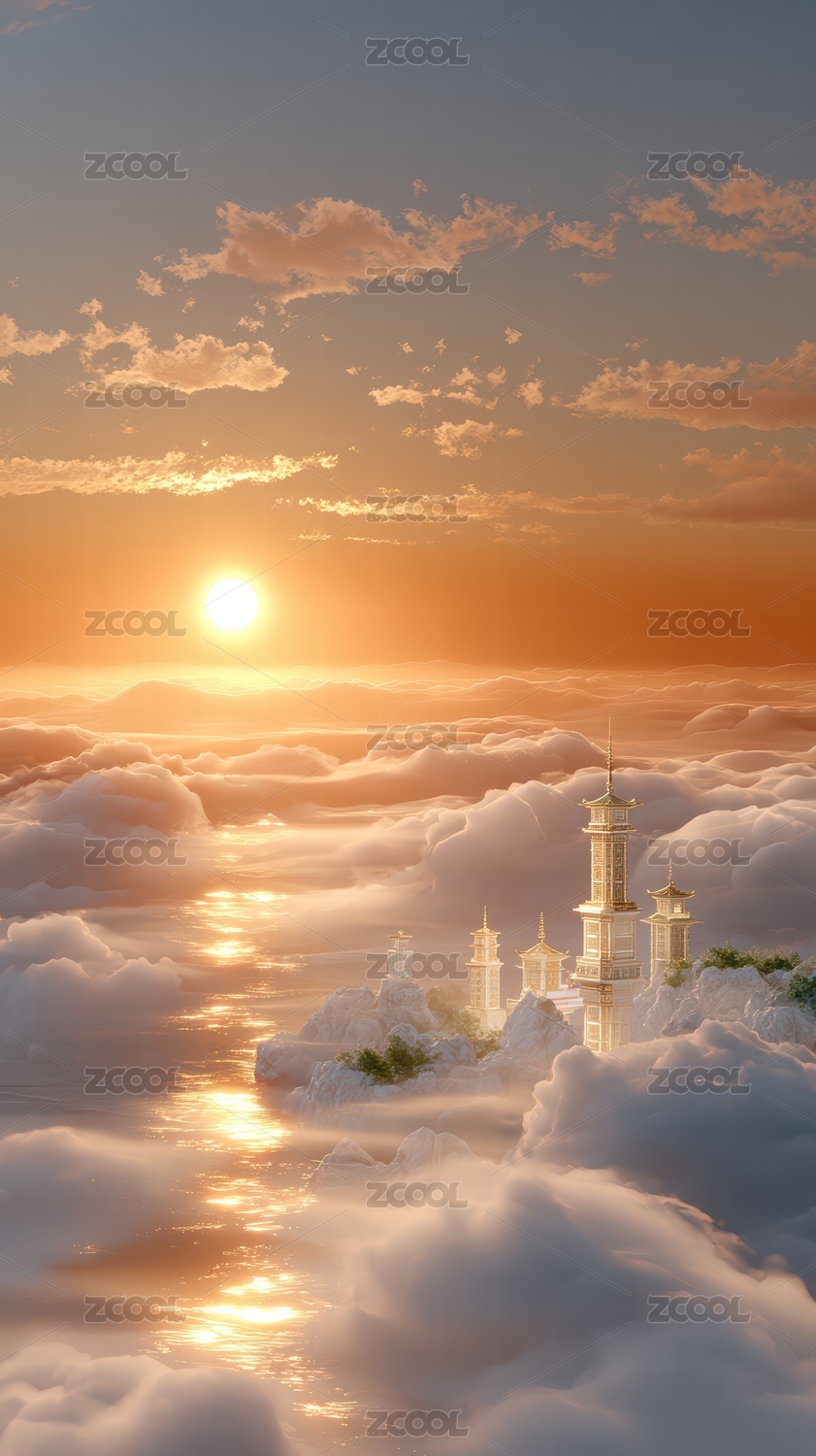 云端仙境日落光辉映照