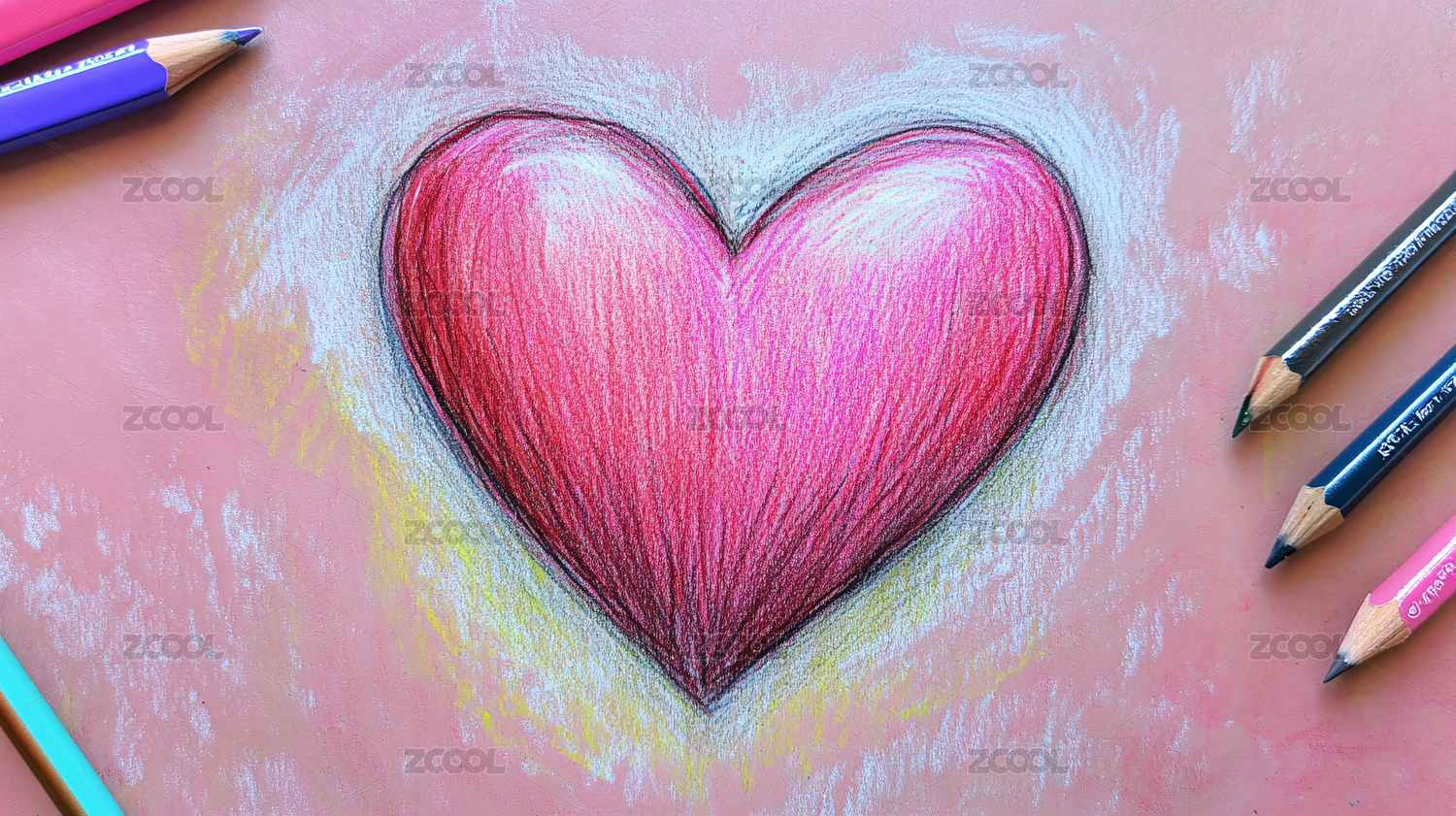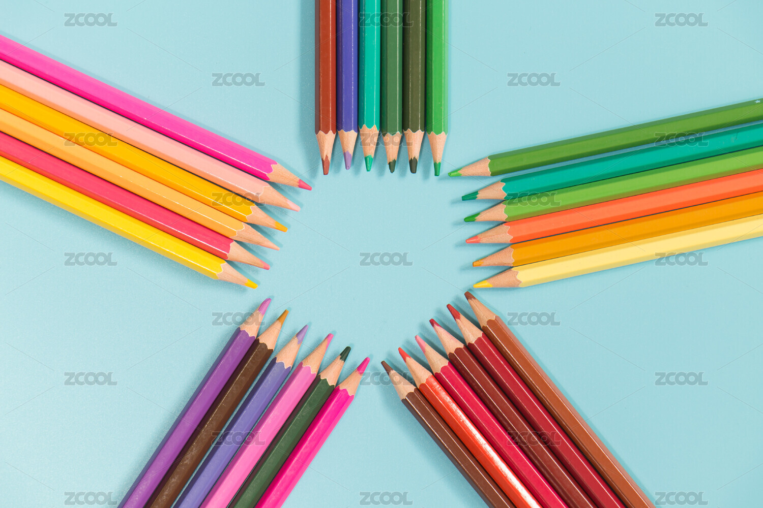 七根彩铅组成一箭头及彩色回形针组成的心形