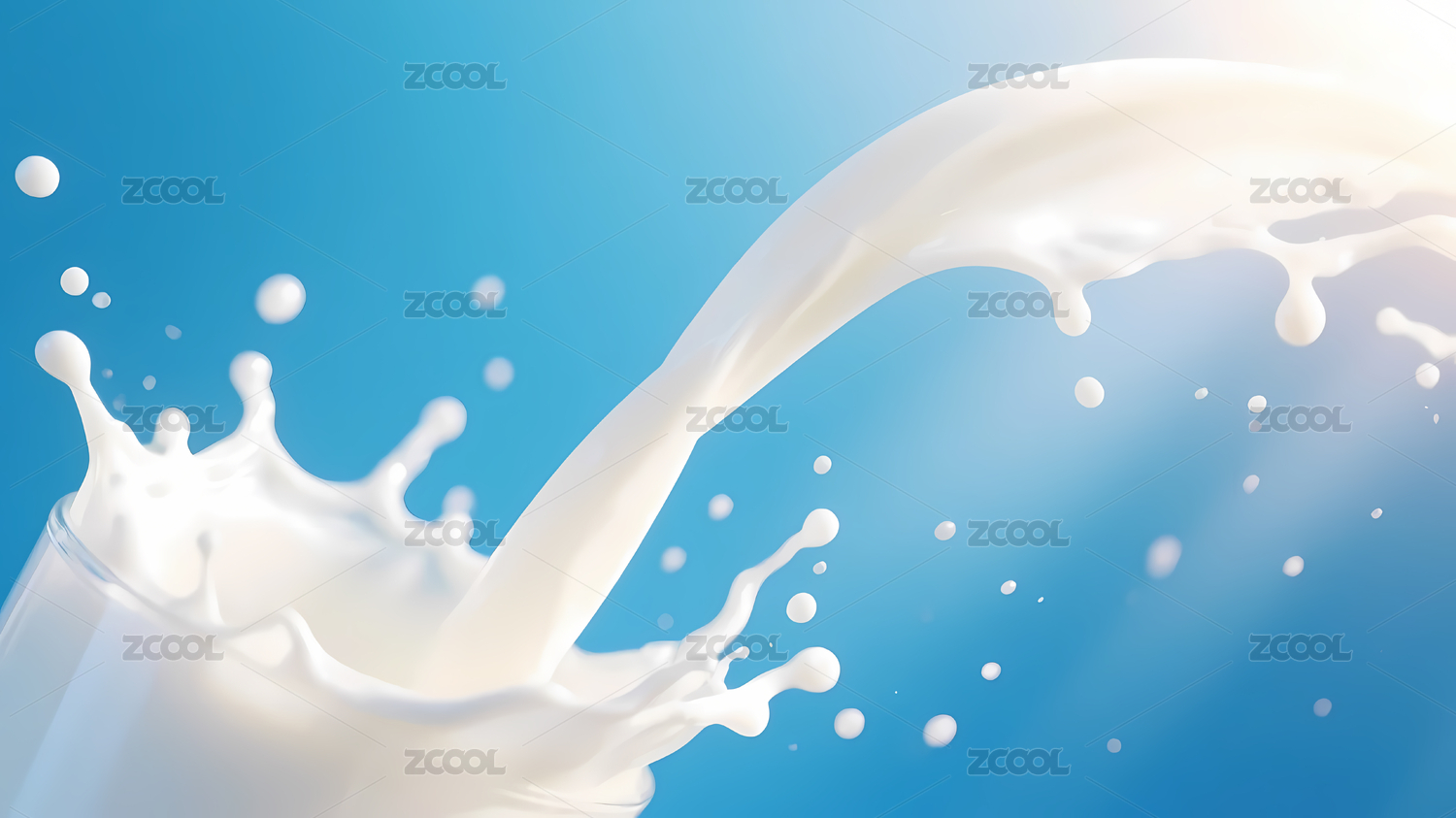 飞溅牛奶与蓝色渐变的清新氛围