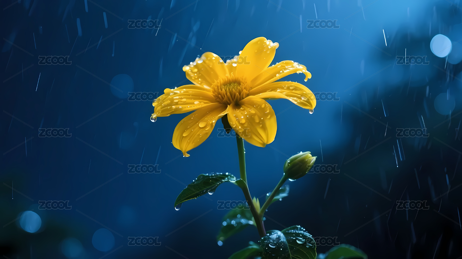 夜晚蓝色雨中黄花