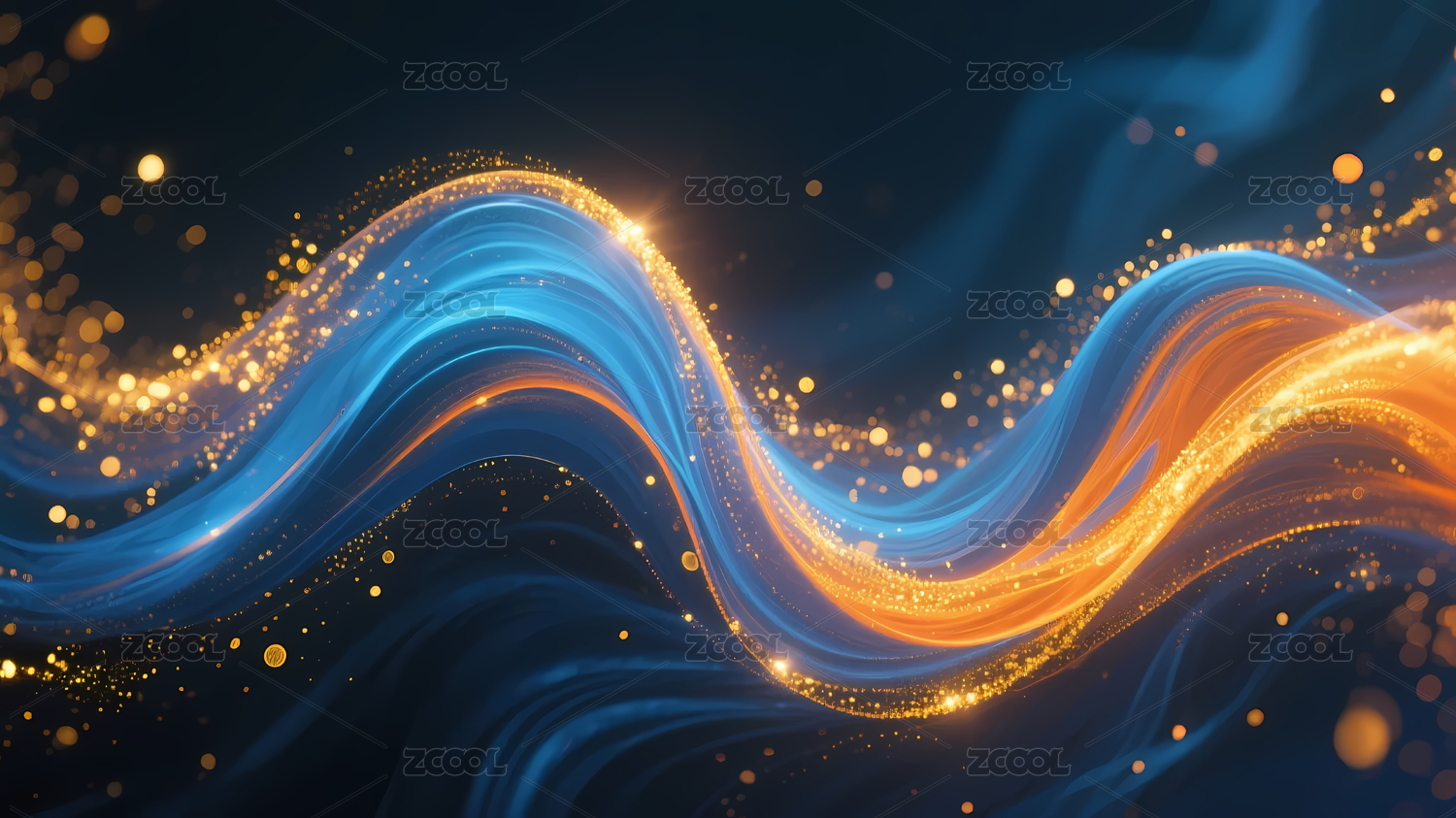 蓝色,背景,深蓝,橙色,梦幻,视觉,光点,线条,流动,波浪
