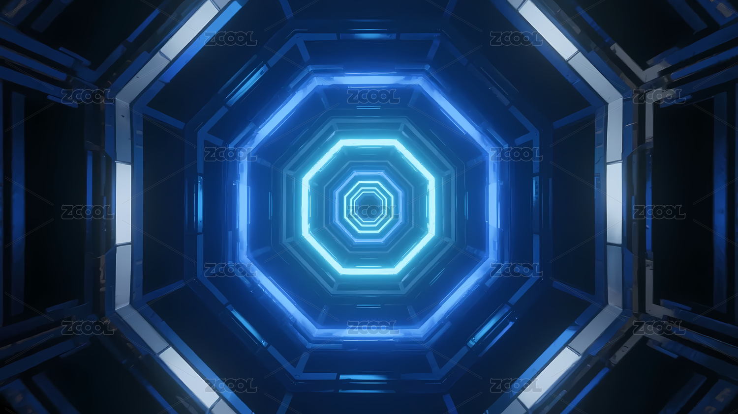 有发光线条条形灯组成的几何形状科技感通道隧道背景素材