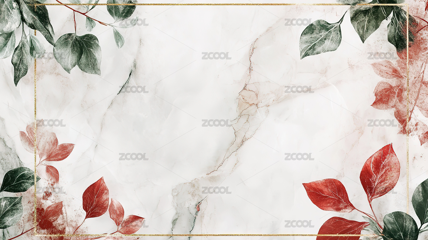 柔和红绿叶边框背景图案