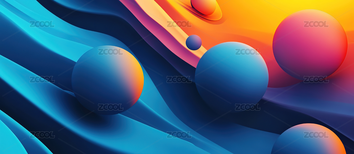 蓝色,背景,黄色,鲜艳,渐变,波浪线,球体,流动,色彩,动态