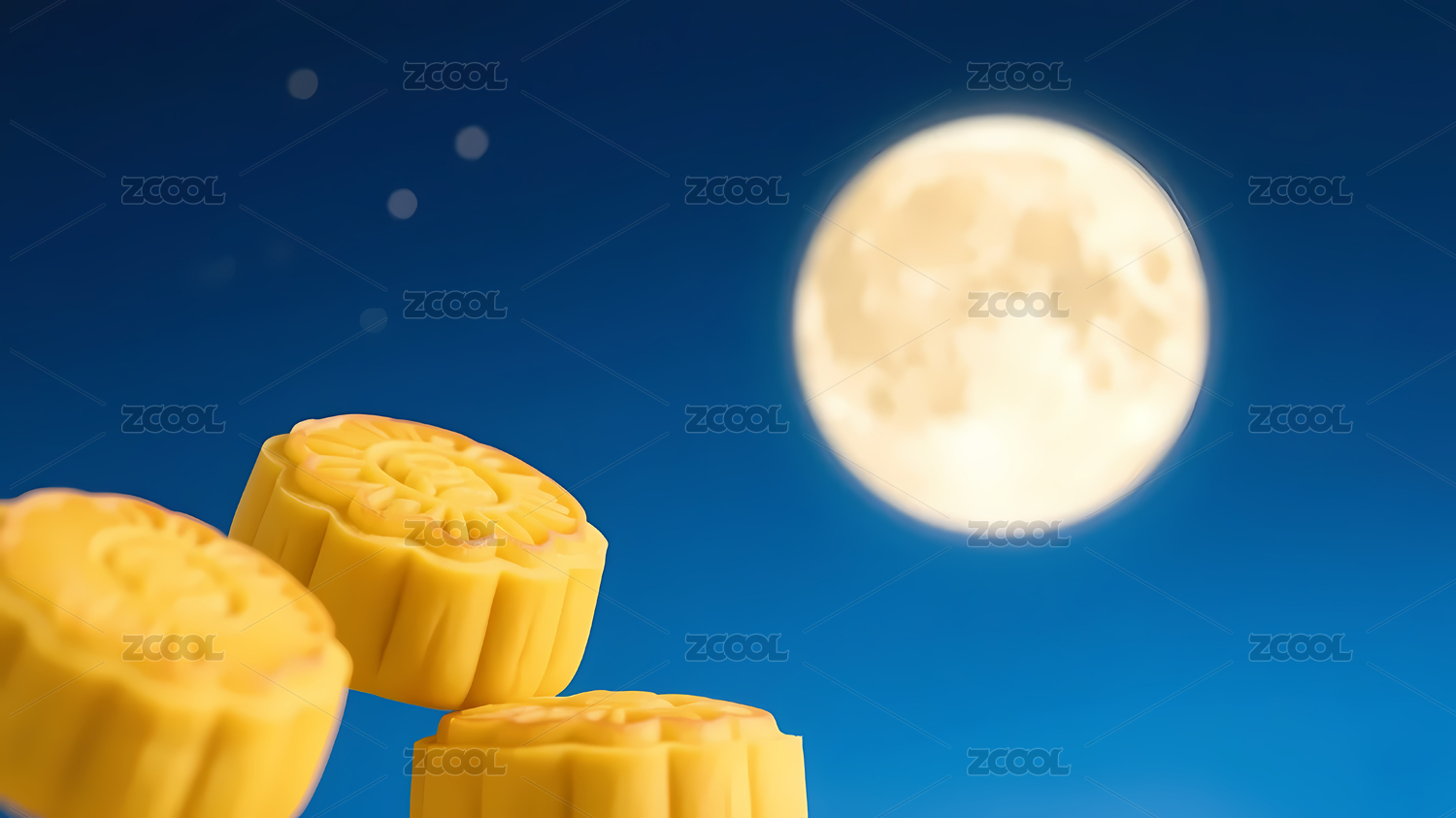 背景,黄色,温暖,月饼,夜空,蓝色,满月,花朵,和谐,食物
