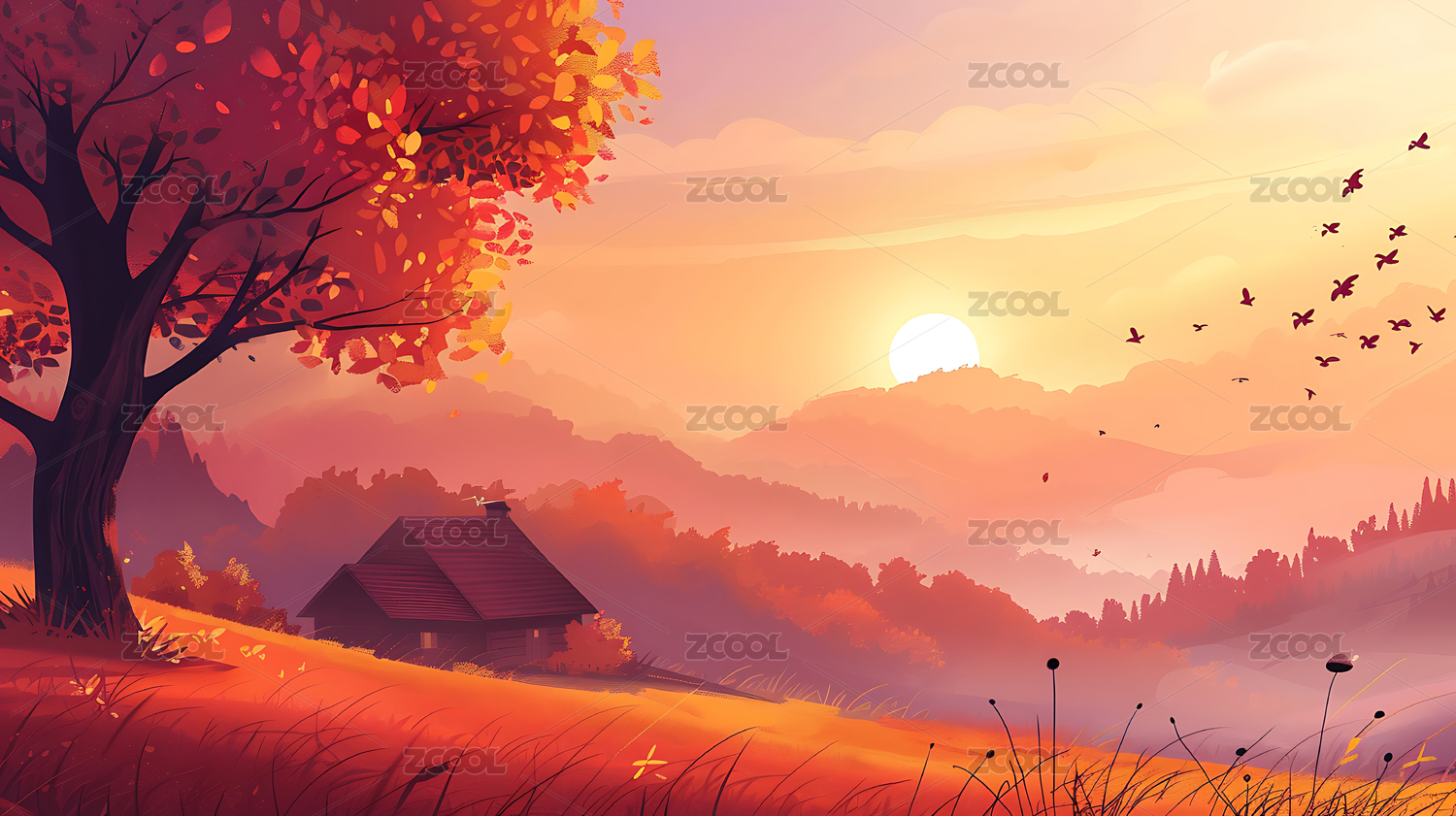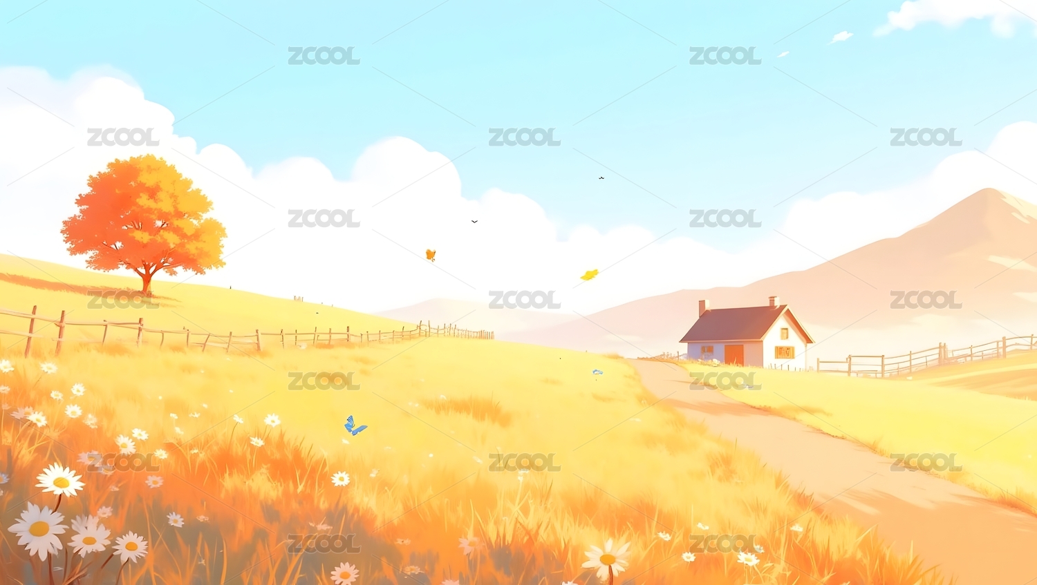 卡通乡村秋季小屋