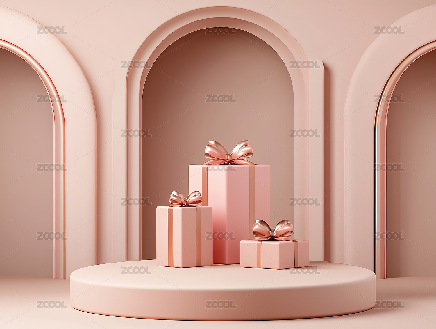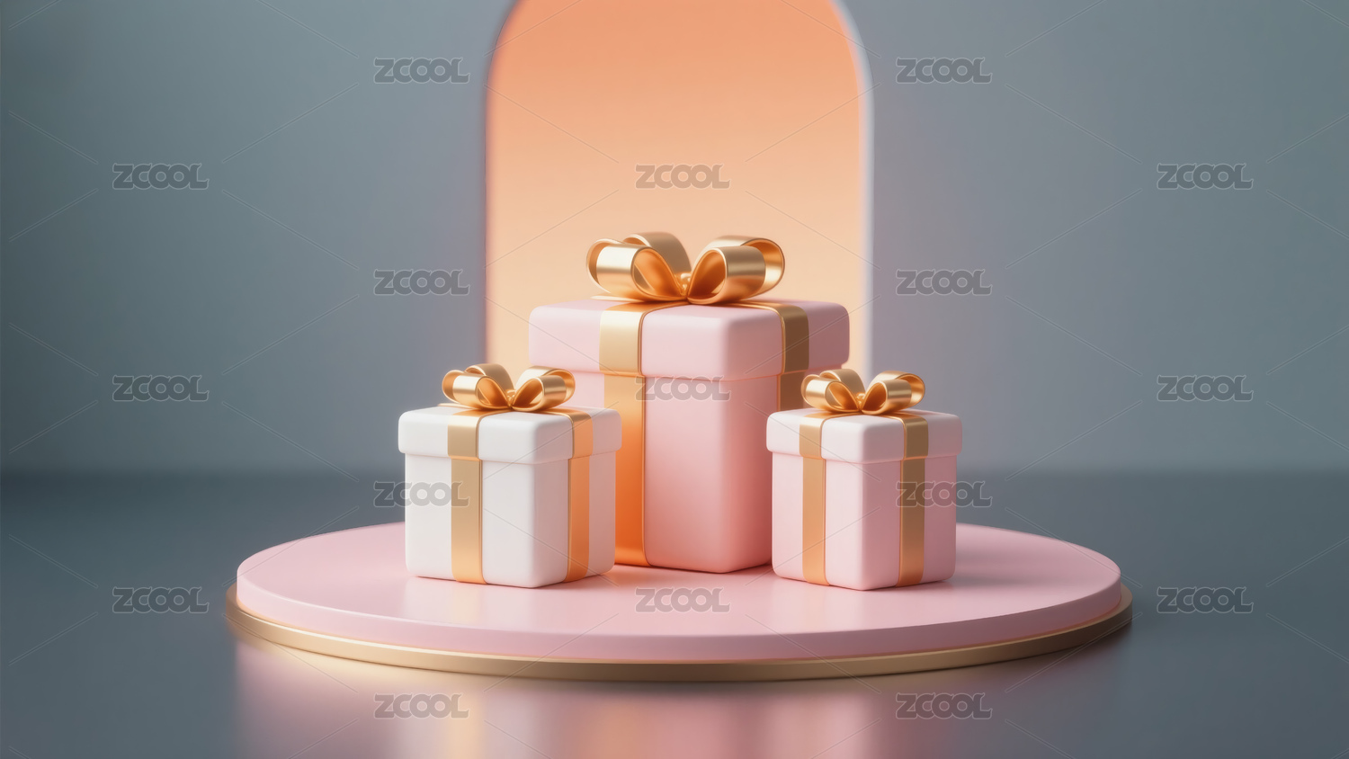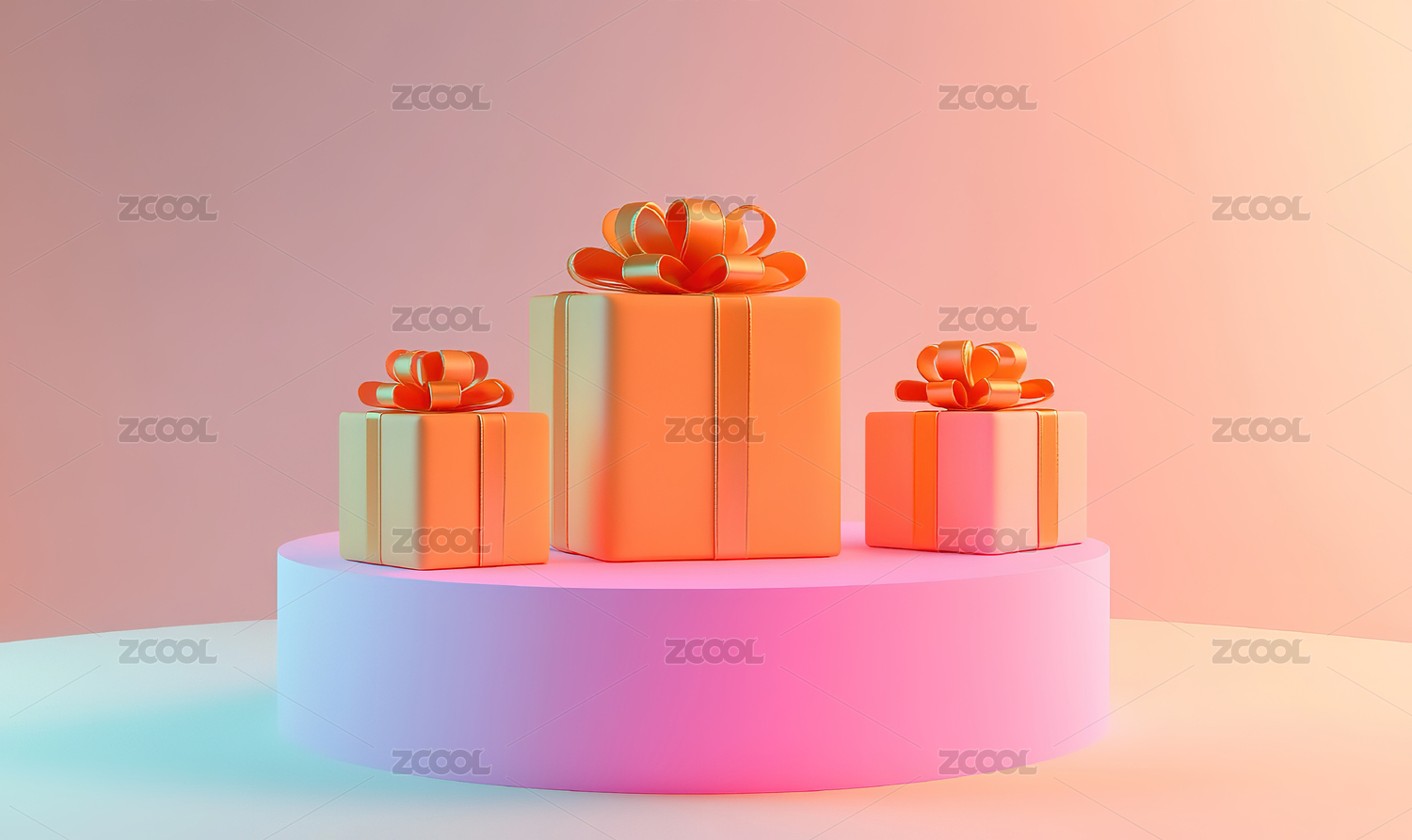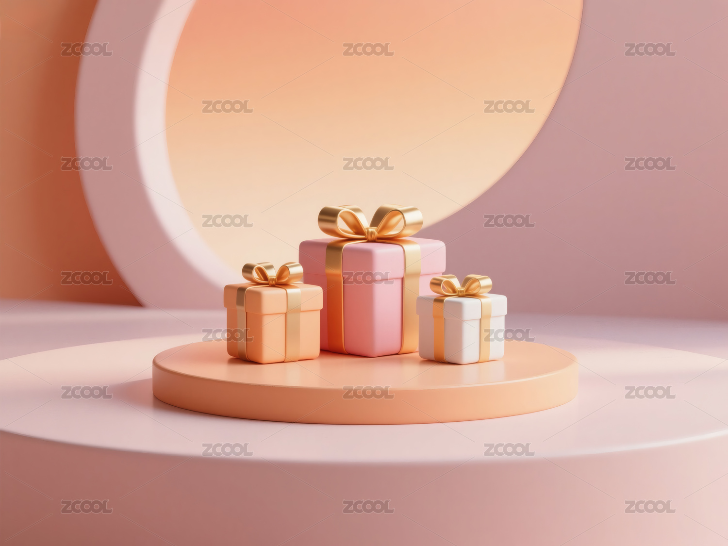展台,电商展台,橙色,粉色,渐变,柔和,唯美,礼物,情人节,3D