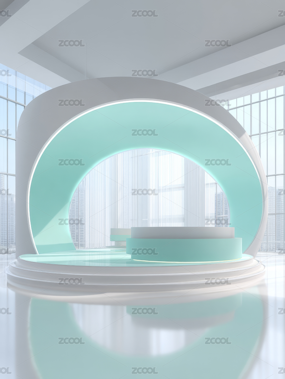 虚拟极简风格弧形室内平台空间背景