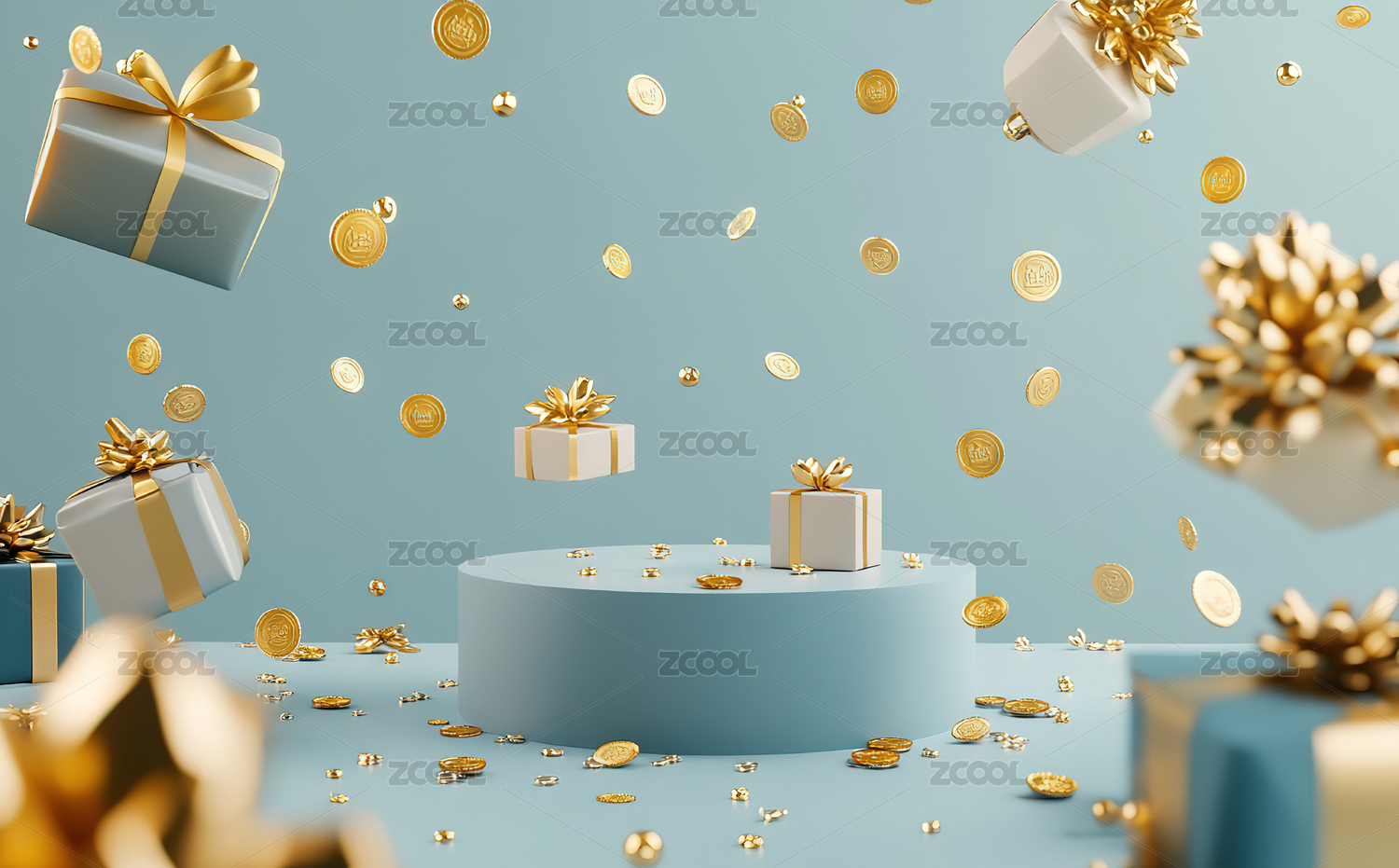 礼品盒,金币,红色,电商展台,展台,电商,喜庆,购物,购物节,中国风