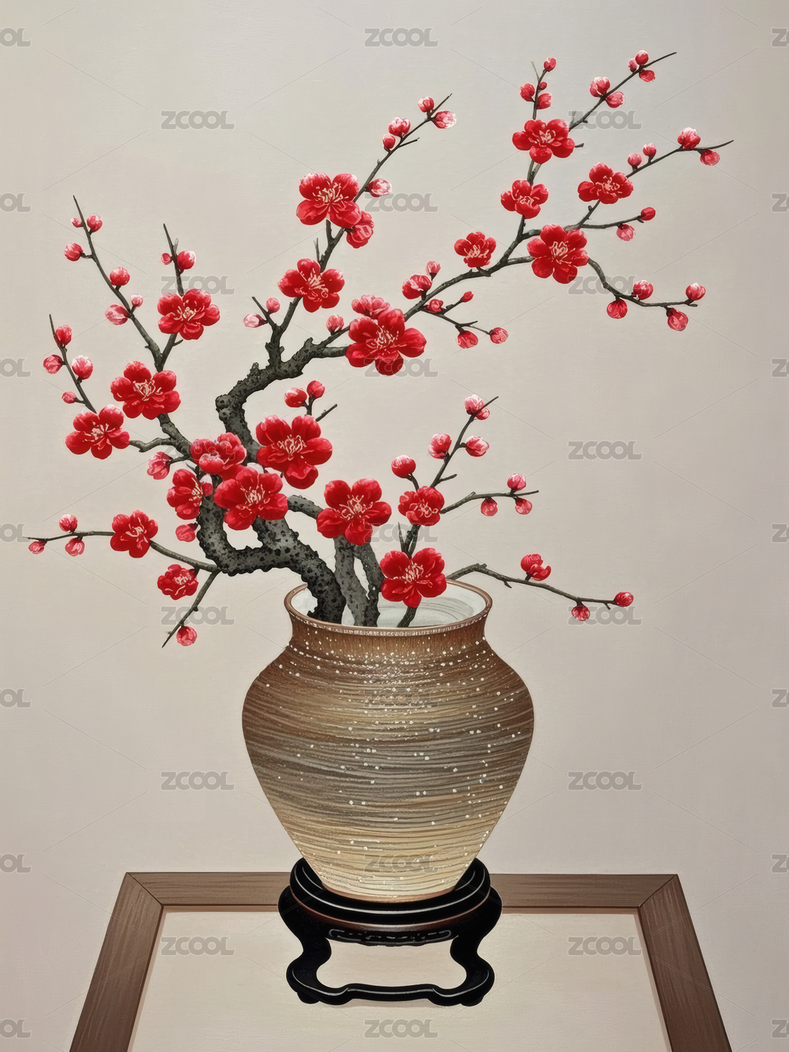 红梅,梅花,刺绣,苏绣,花,植物,花瓶,青花瓷,瓷器,古风