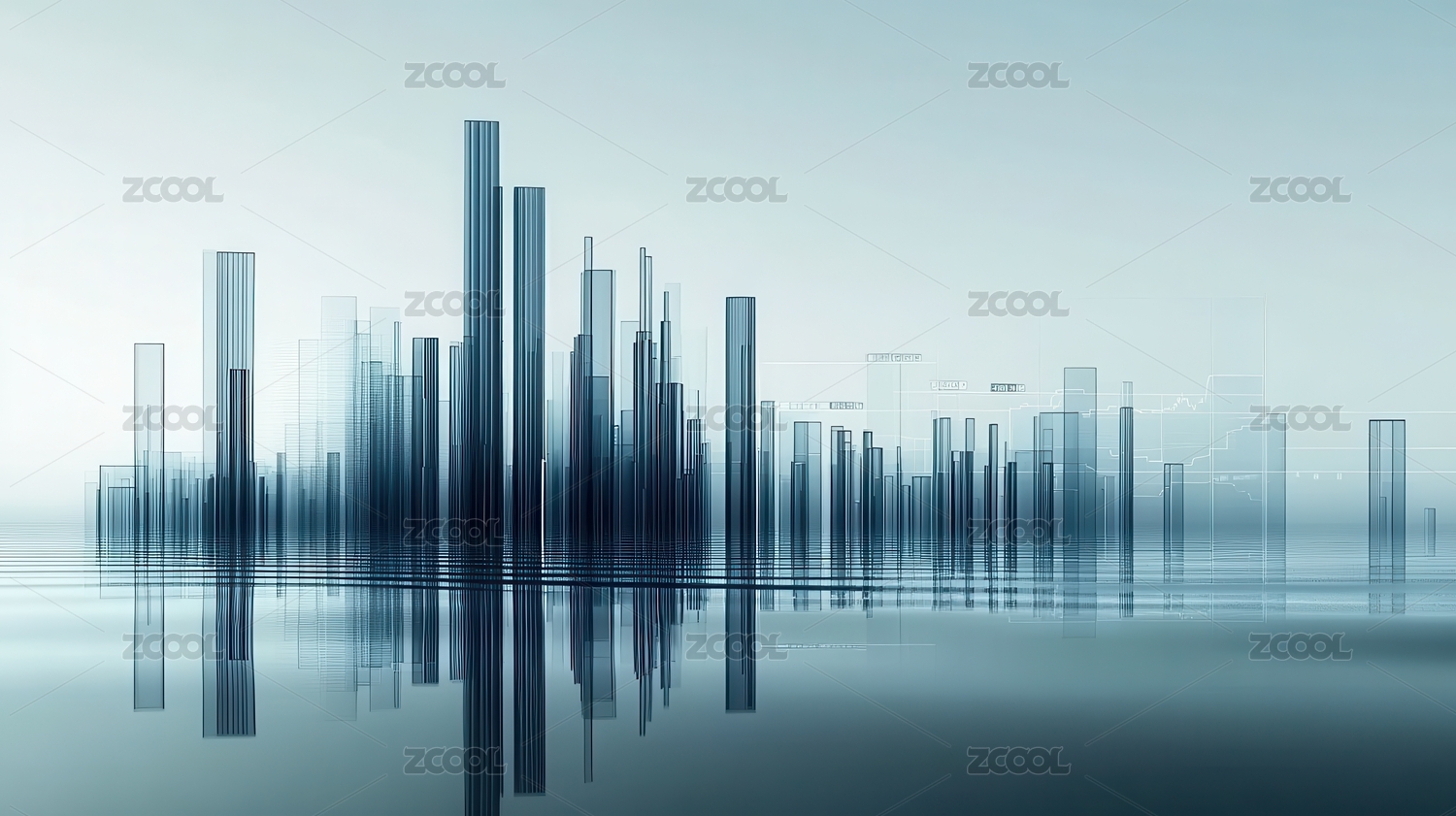 科技城市虚拟概念玻璃建筑水面倒影背景