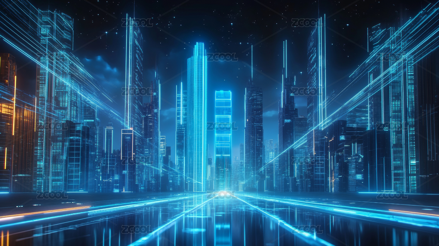 光波粒子组成的高科技感未来感城市背景图