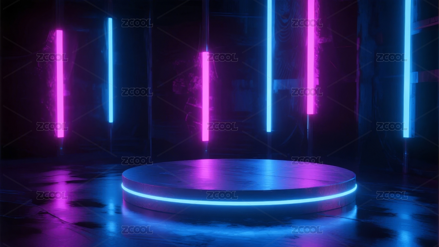 蓝色霓虹灯下的圆形舞台
