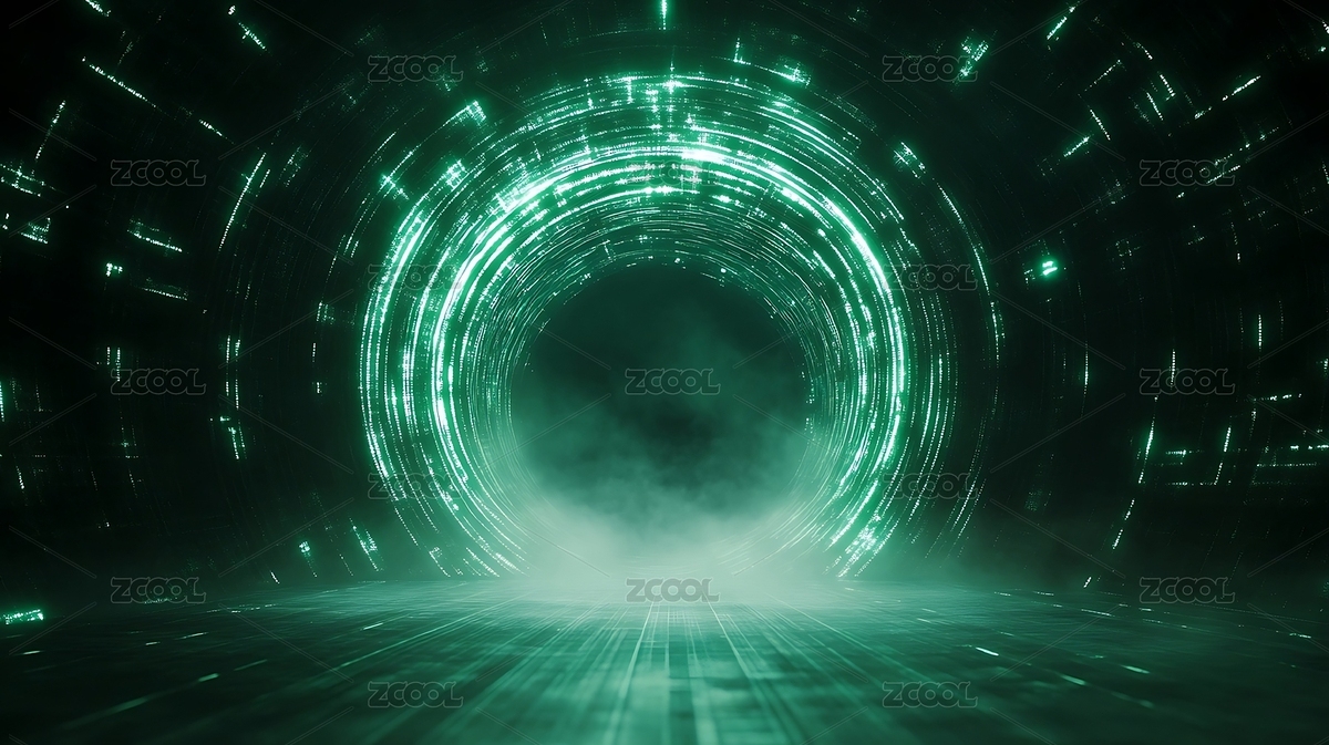 科幻感绿色虚拟数字隧道