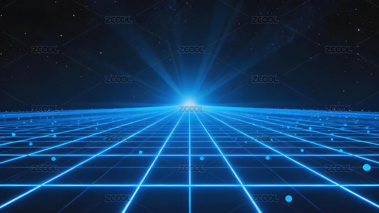 蓝色网格光效科技背景