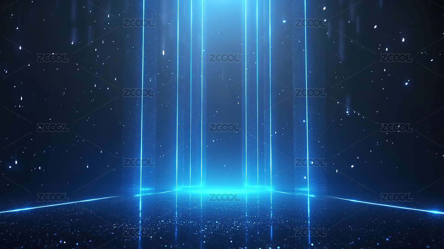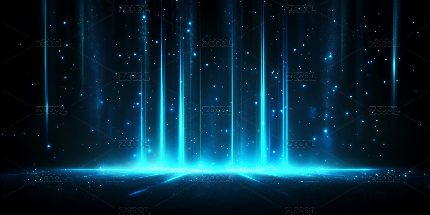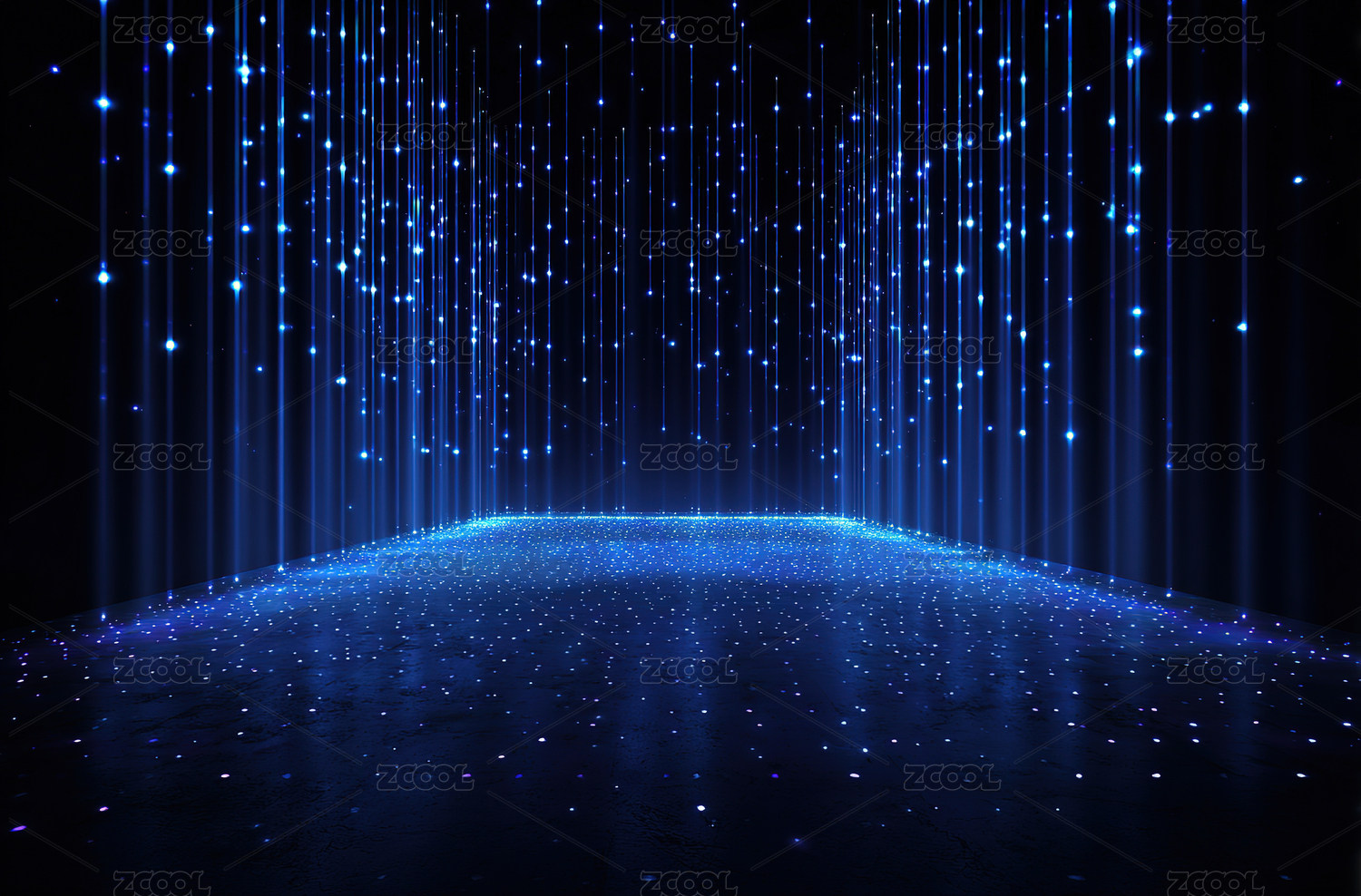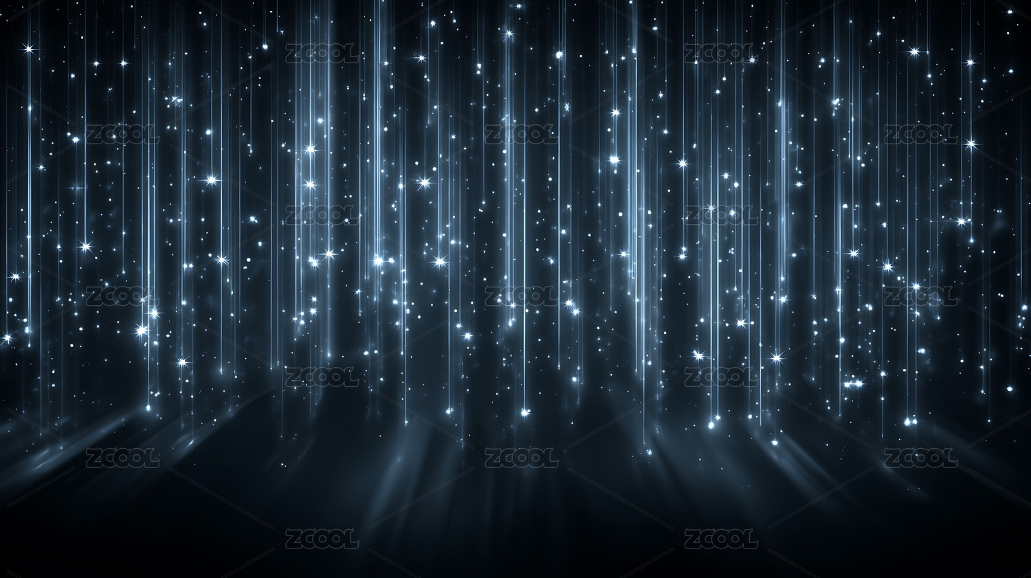 蓝色梦幻背景,闪耀粒子雨洒落地面