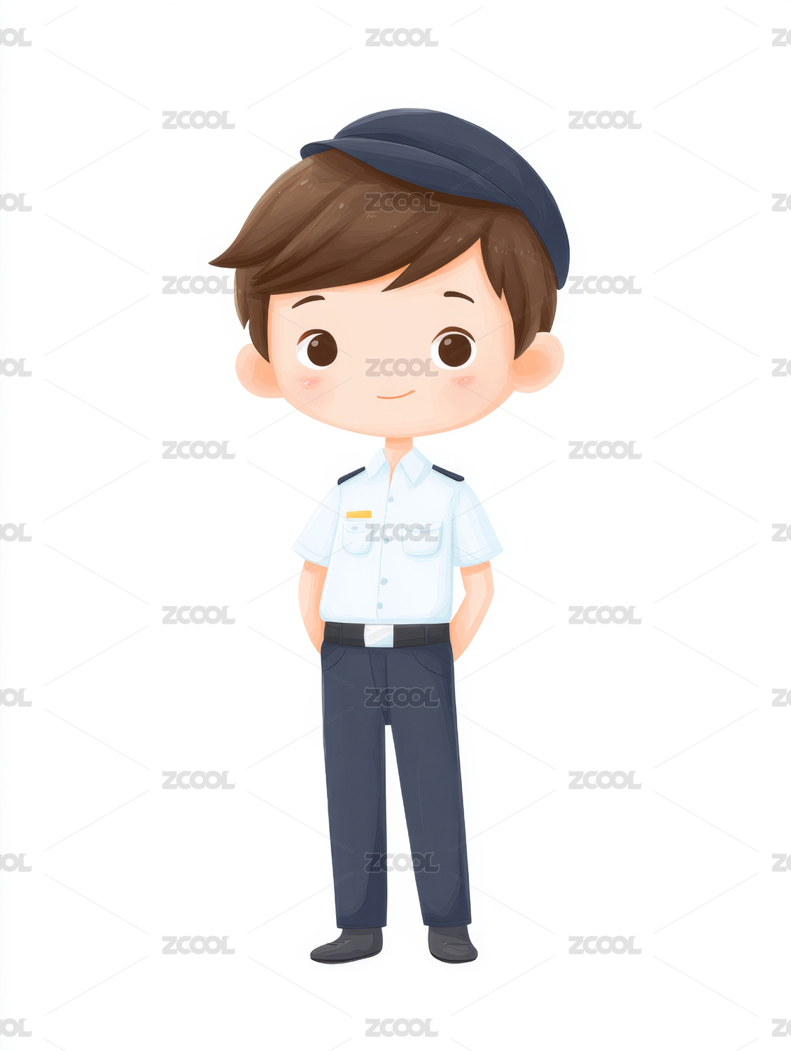 卡通,警察,制服,帽子,微笑,男孩,职业,插画