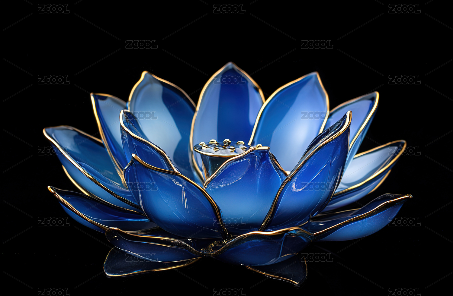 蓝色透明玻璃质感荷花