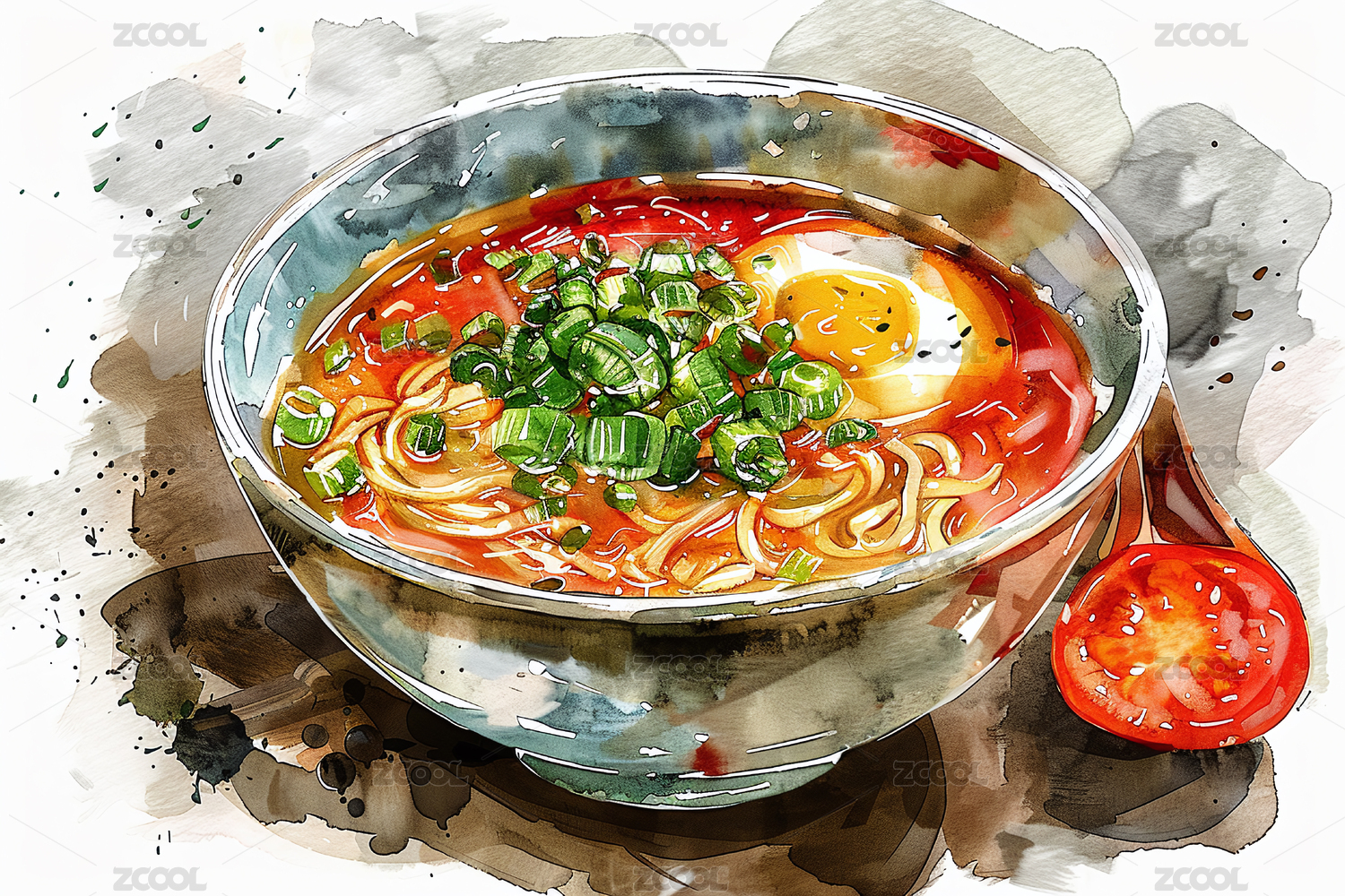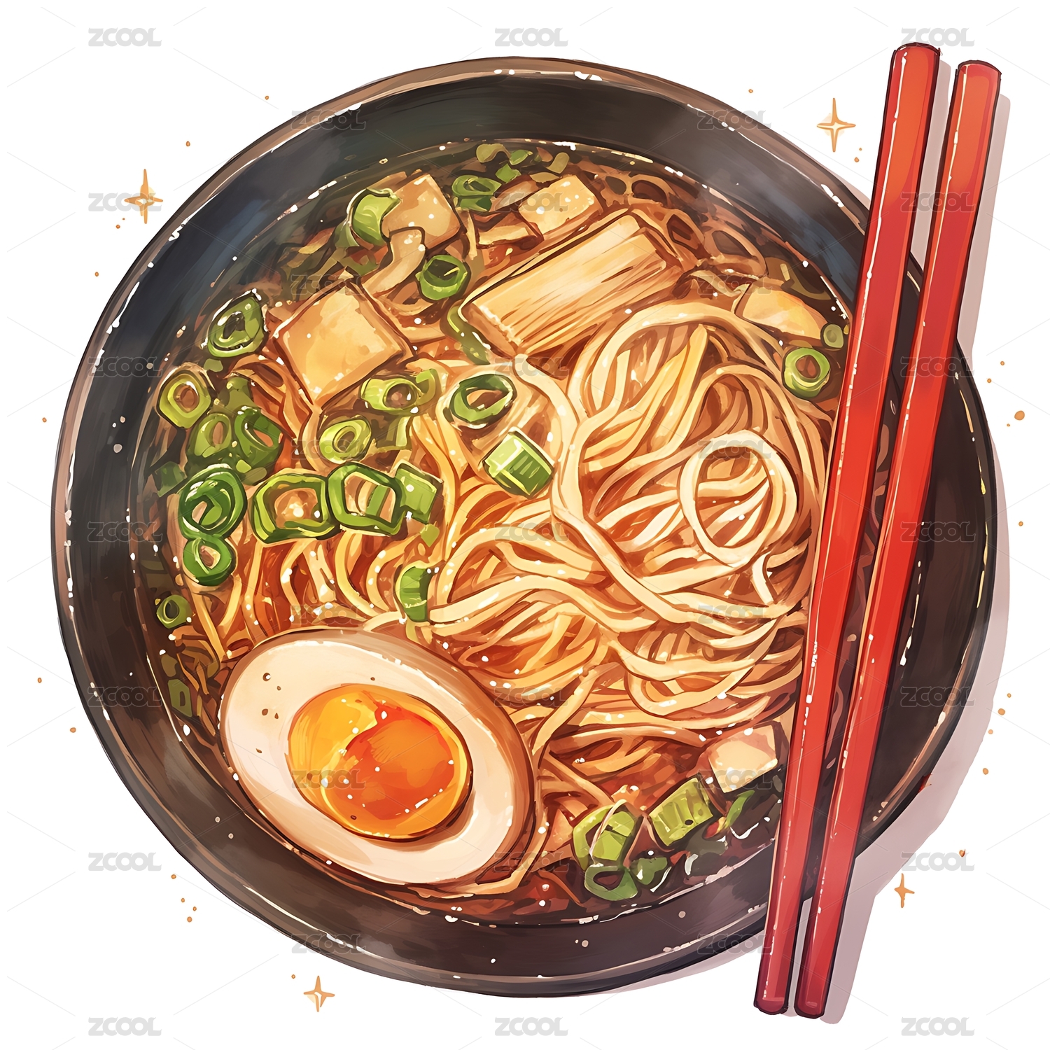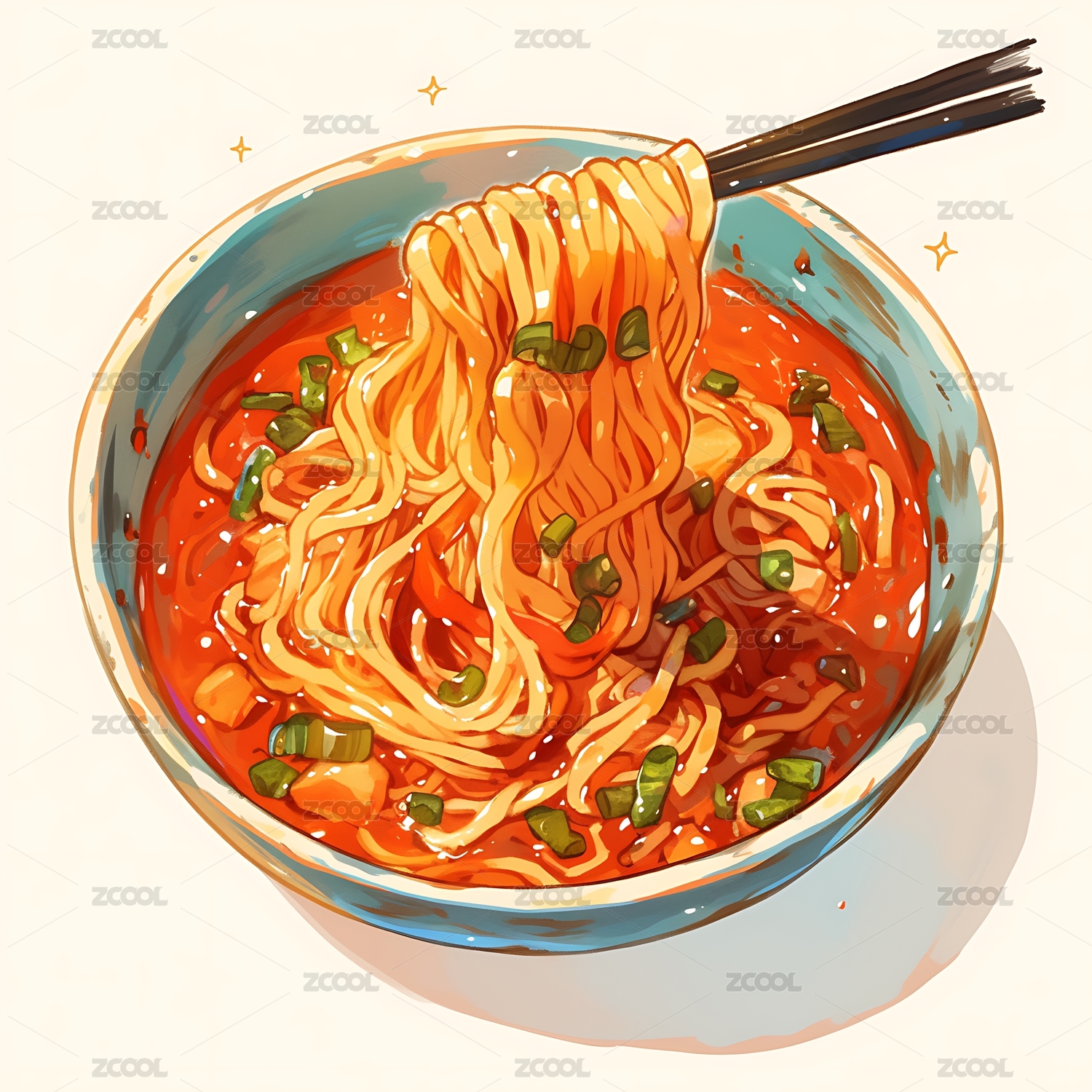 筷子挑起一碗诱人的米粉面条干拌面小吃手绘
