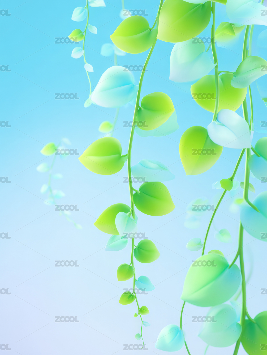 绿叶,清新,自然,背景,植物,枝条,蓝色,明亮,春季,插画