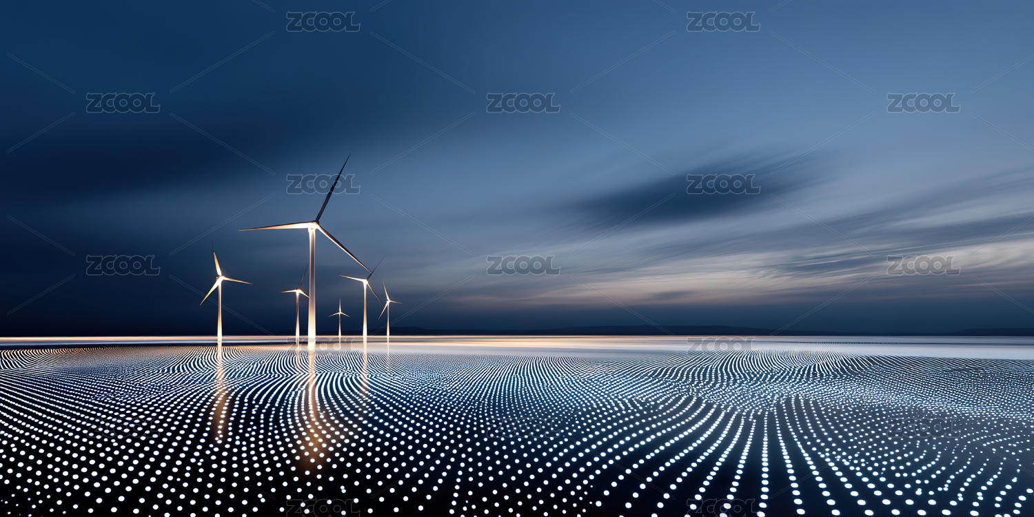 风电,海上风电,科技,光,发光,风轮机,新能源,电力,夜晚,大海