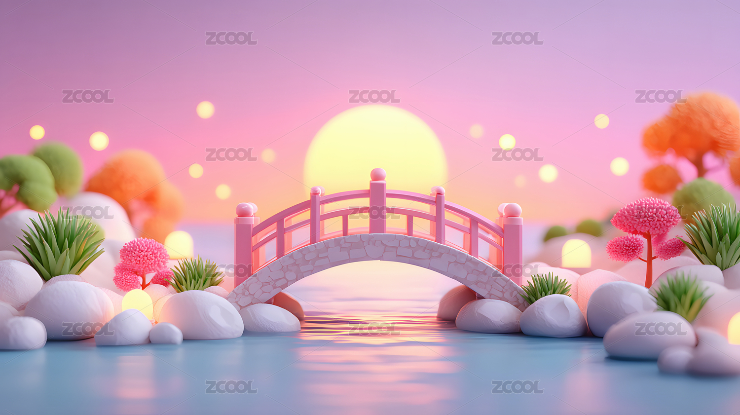 卡通风格庭院小桥流水