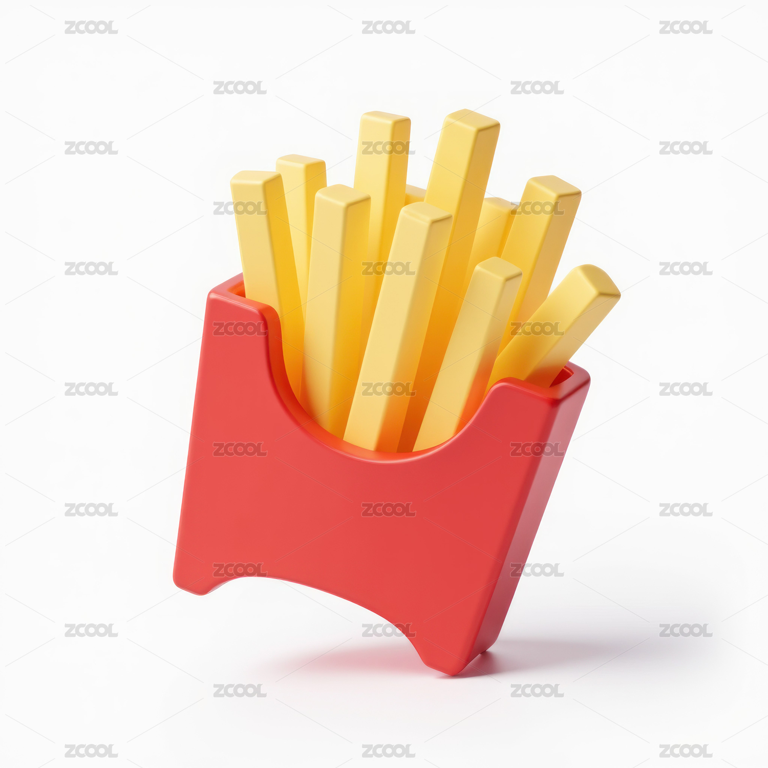 薯条,红色,盒子,卡通,风格,美食,黄色,3D,渲染,快餐