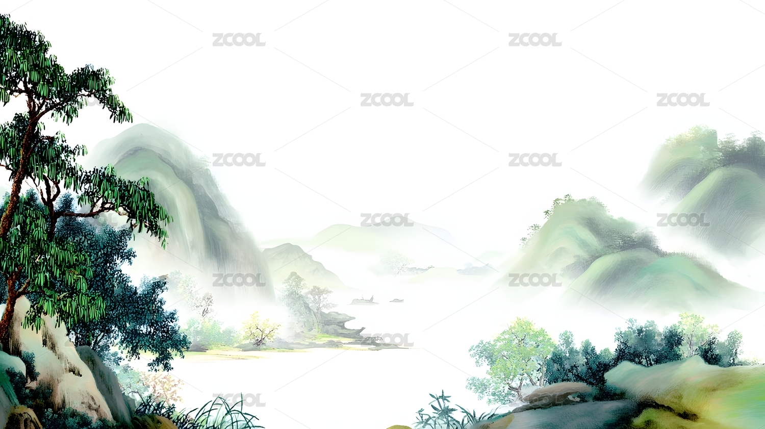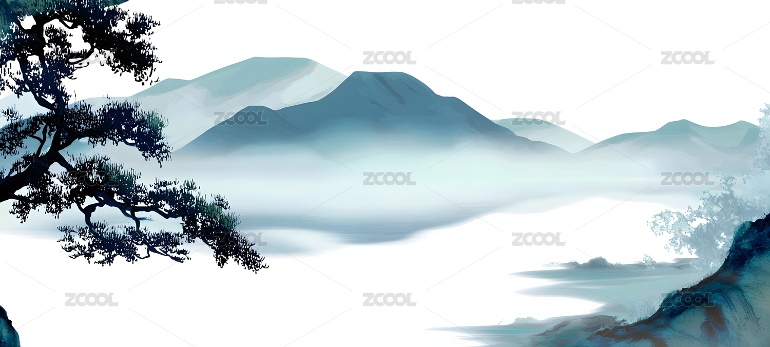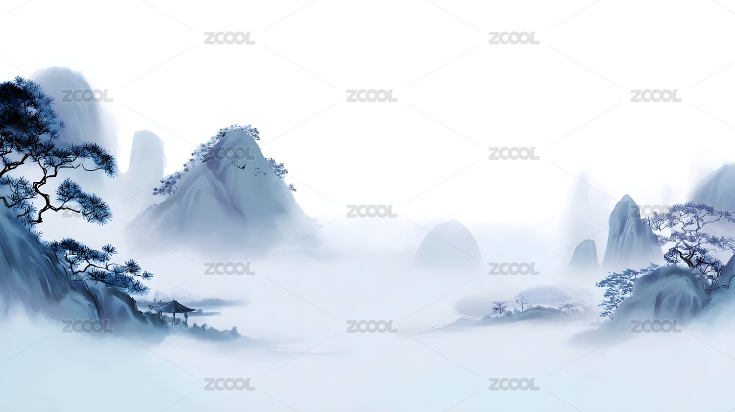 山水,仙境,朦胧,水墨,写意,自然,意境,云雾,淡雅,留白
