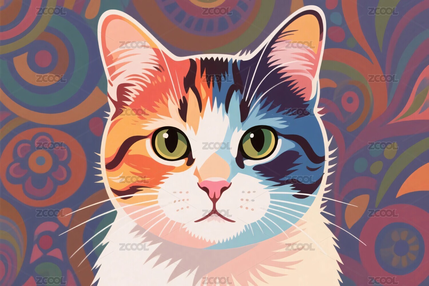 质感,艺术,猫咪,宠物,绘画,墨镜,肖像,时尚,潮流,彩色
