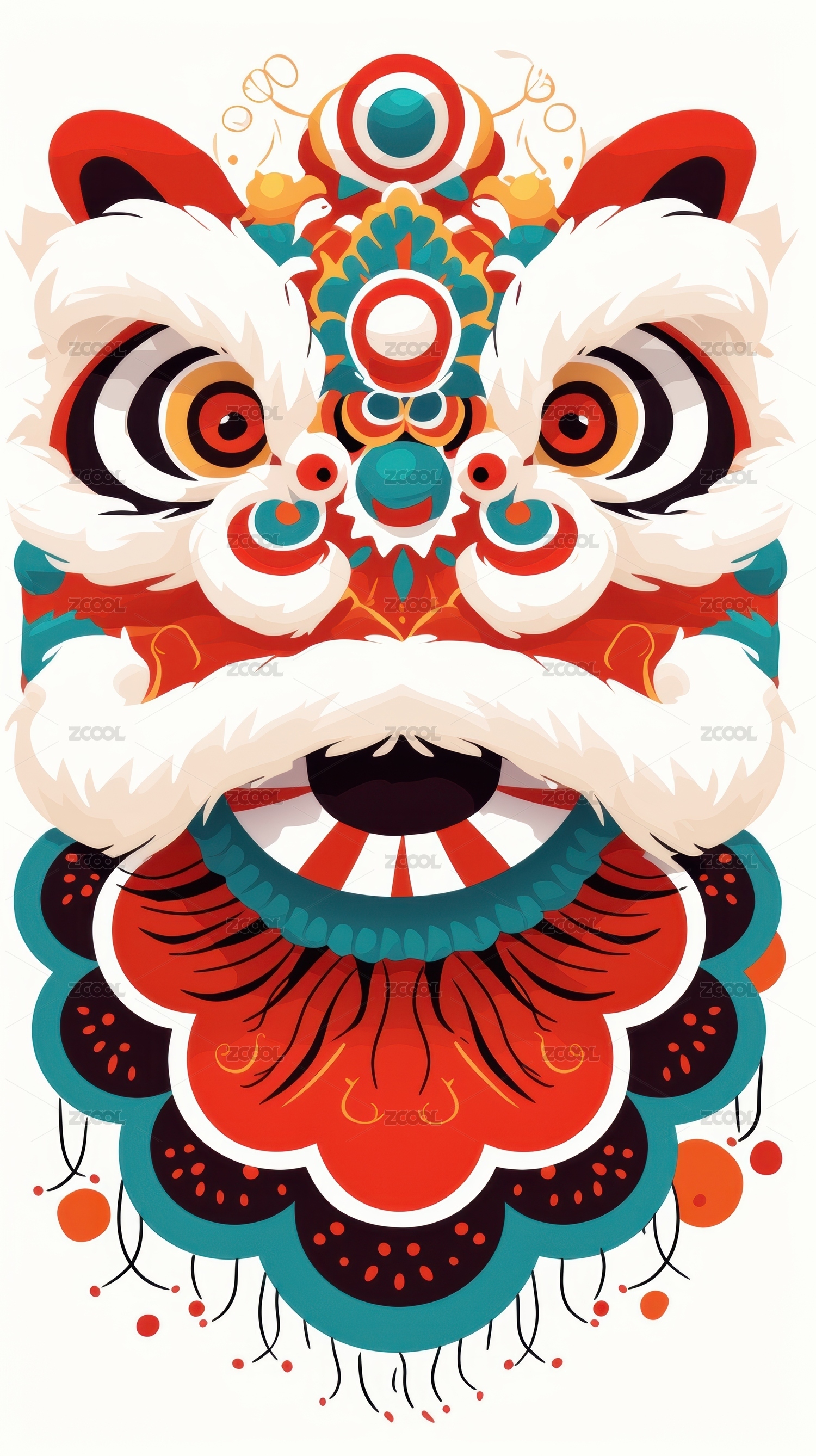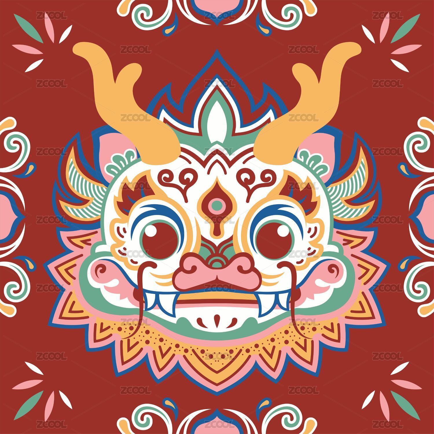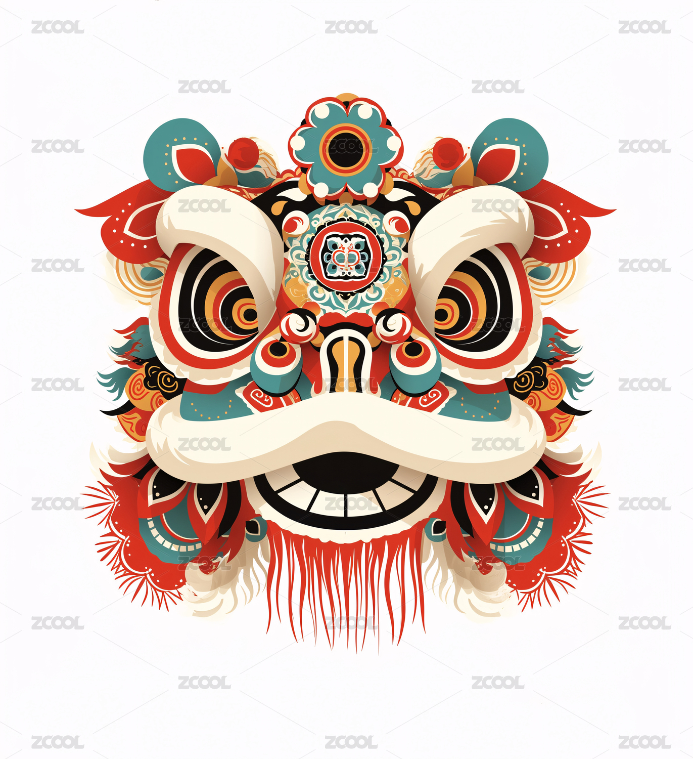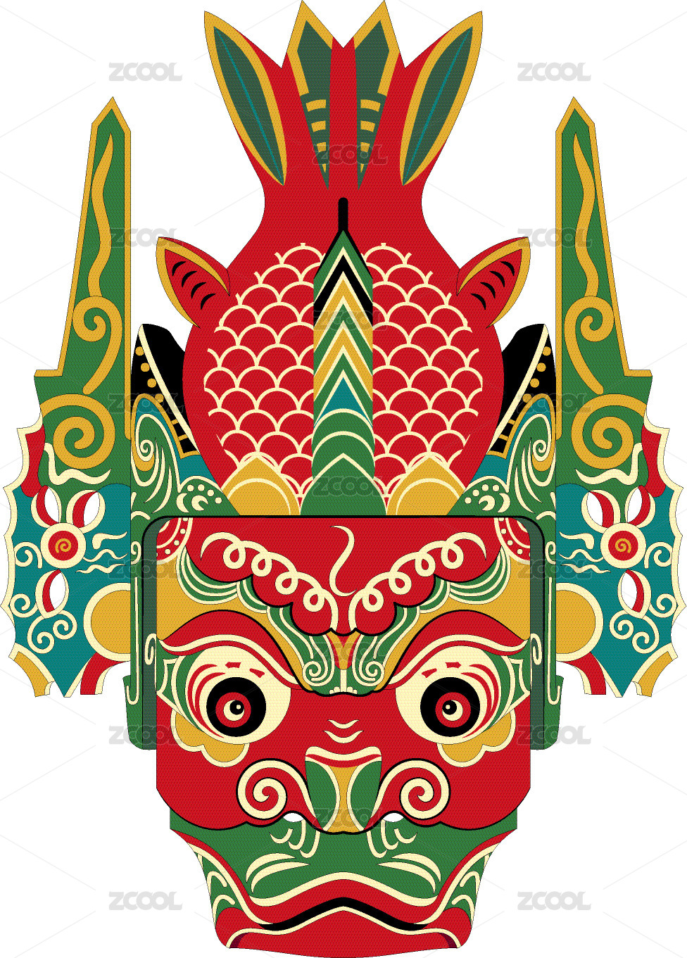 纹样,广东,佛山,醒狮,狮头,鳌鱼角狮头,民俗,文化,艺术,矢量图
