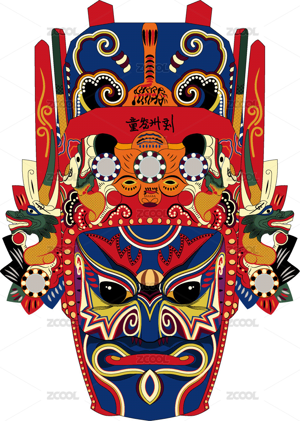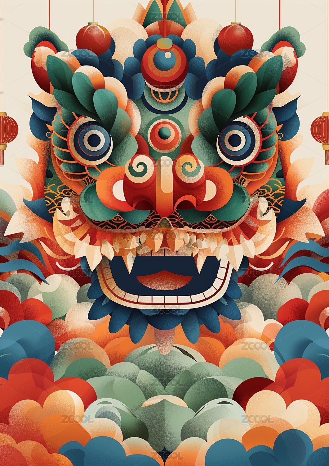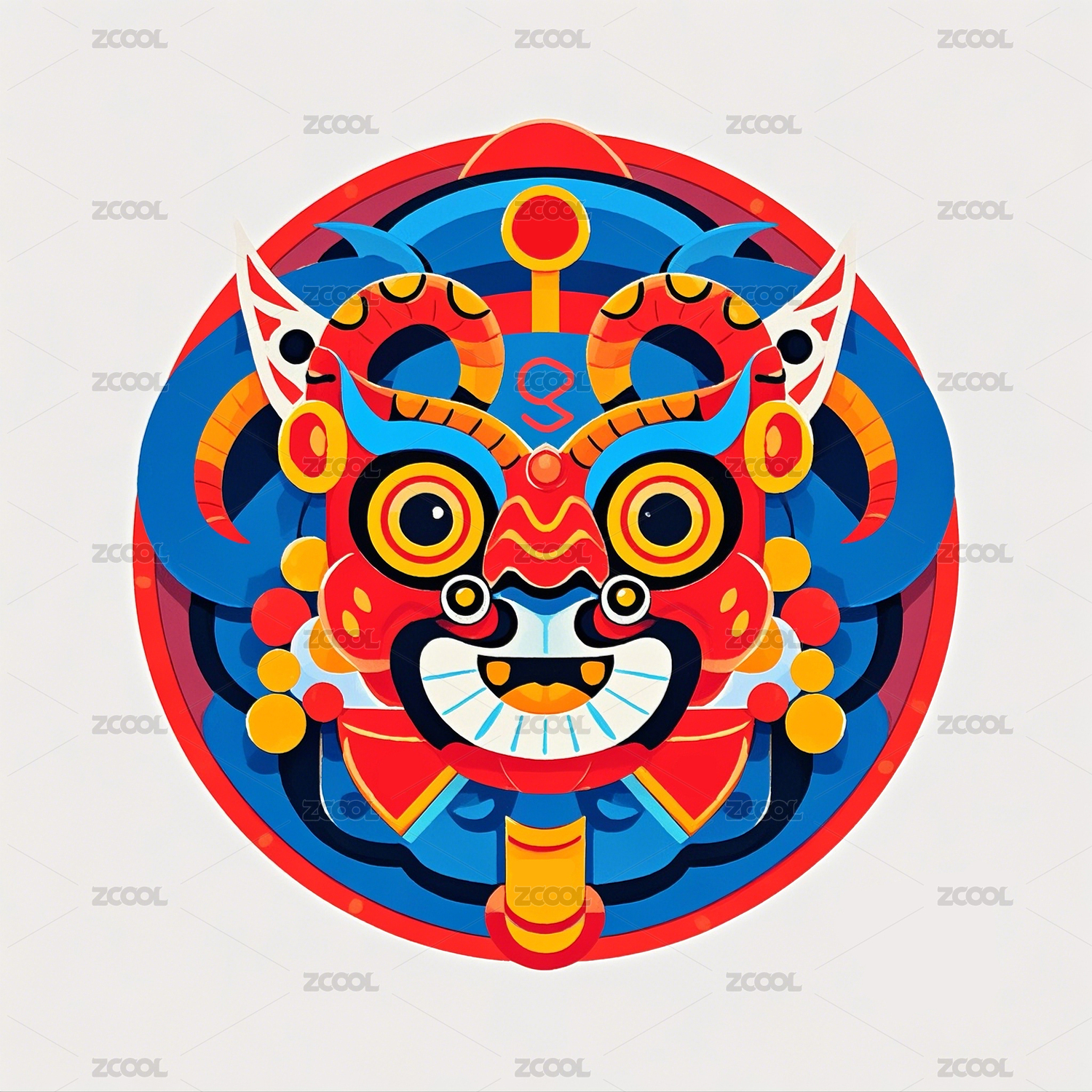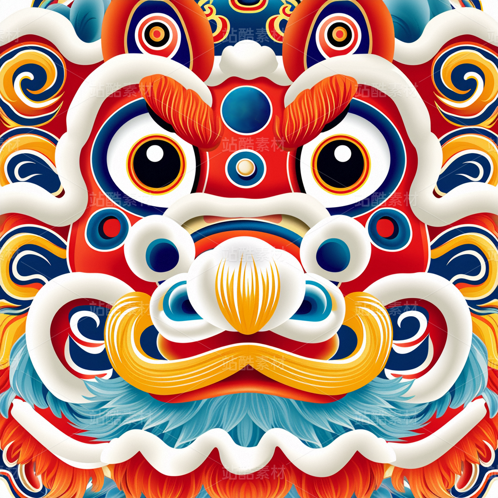 纹样,广东,佛山,醒狮,狮头,鳌鱼角狮头,民俗,文化,艺术,矢量图