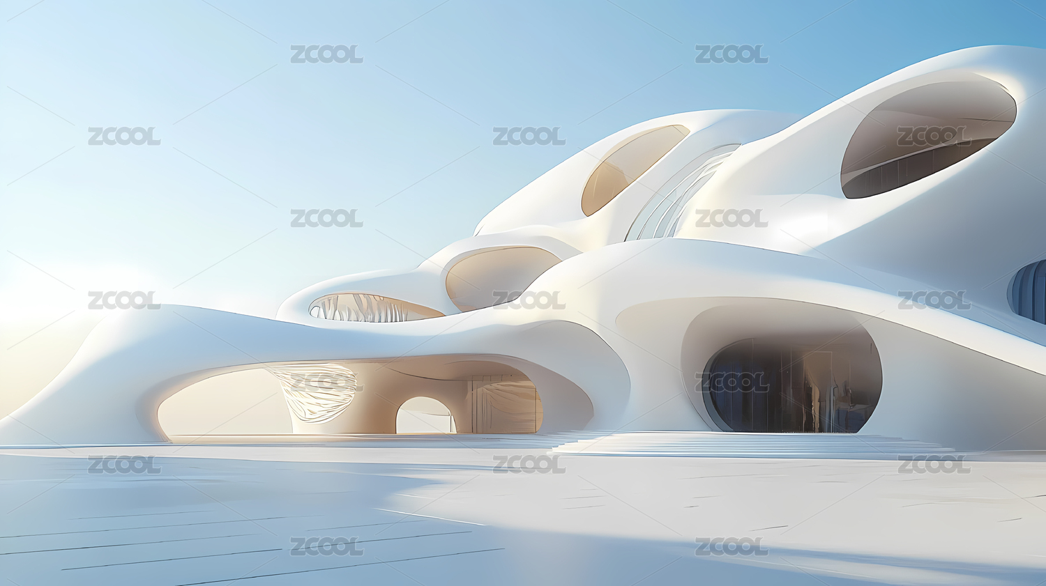 未来主义白色建筑隧道