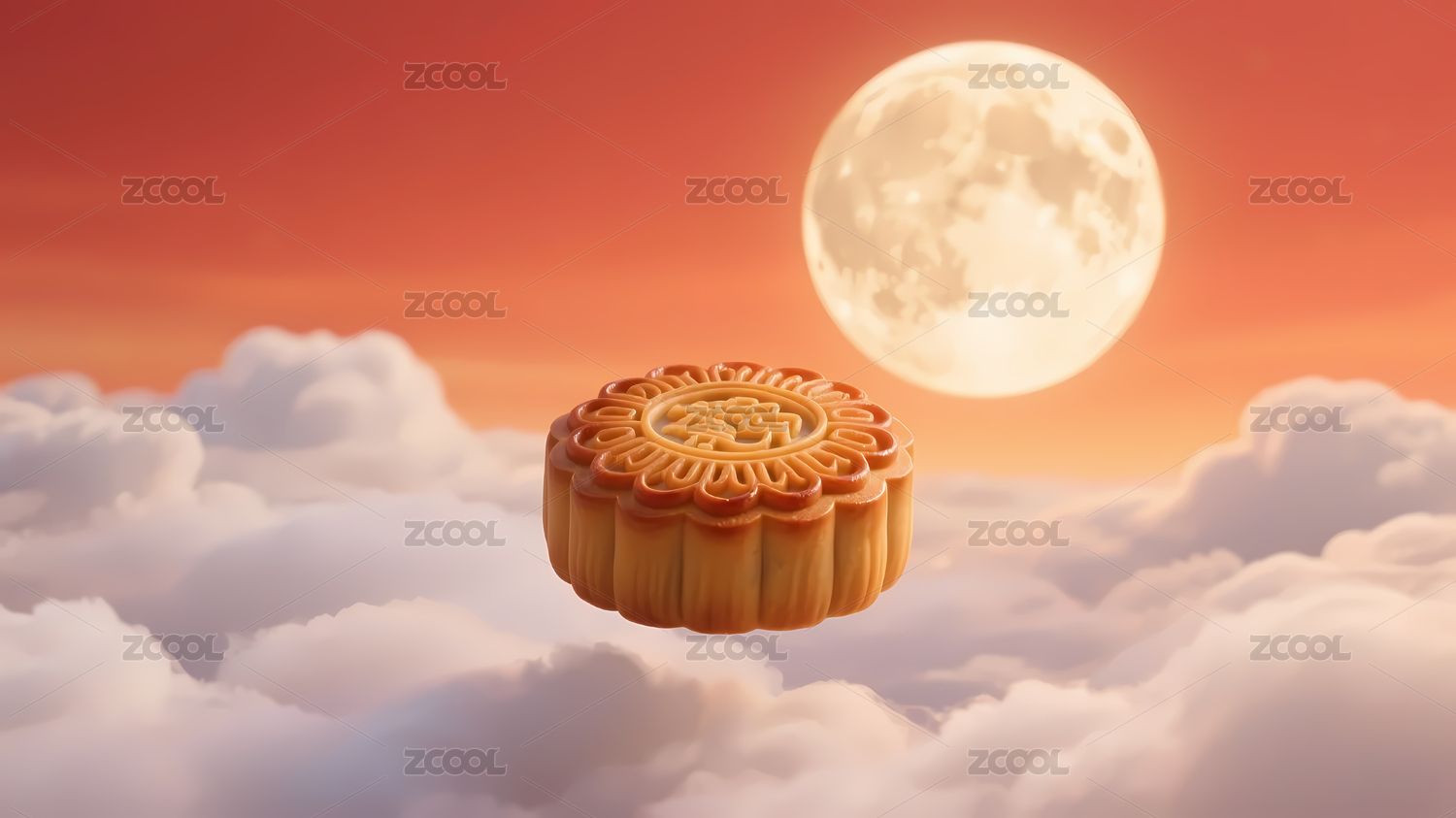 天空,背景,节日,白云,月饼,橙红色,月亮,中秋,氛围,橙黄色
