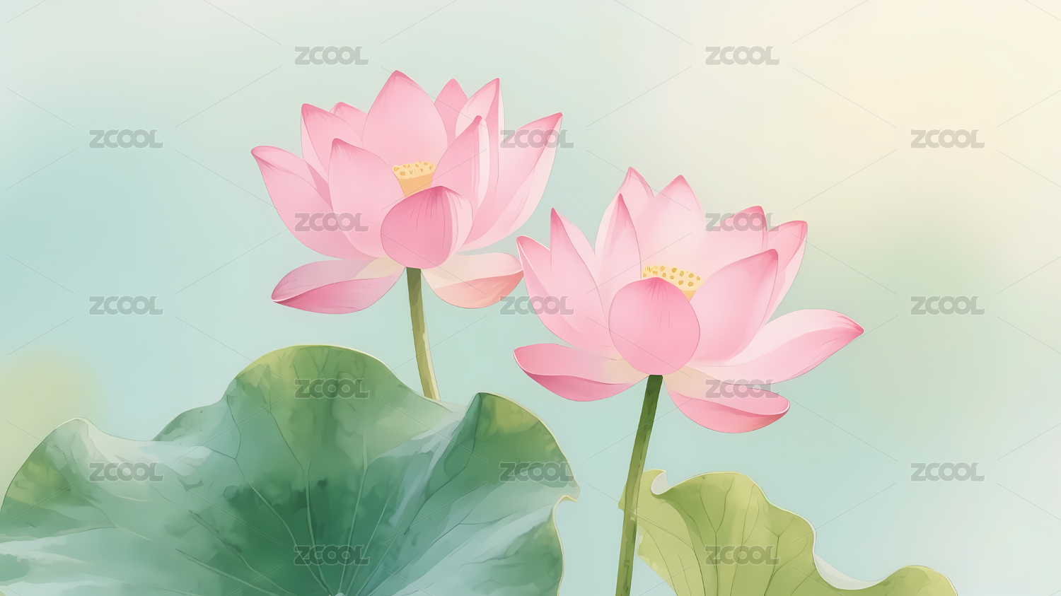 背景,宁静,自然,绿色,荷叶,荷花,粉红,天空,白云,柔和