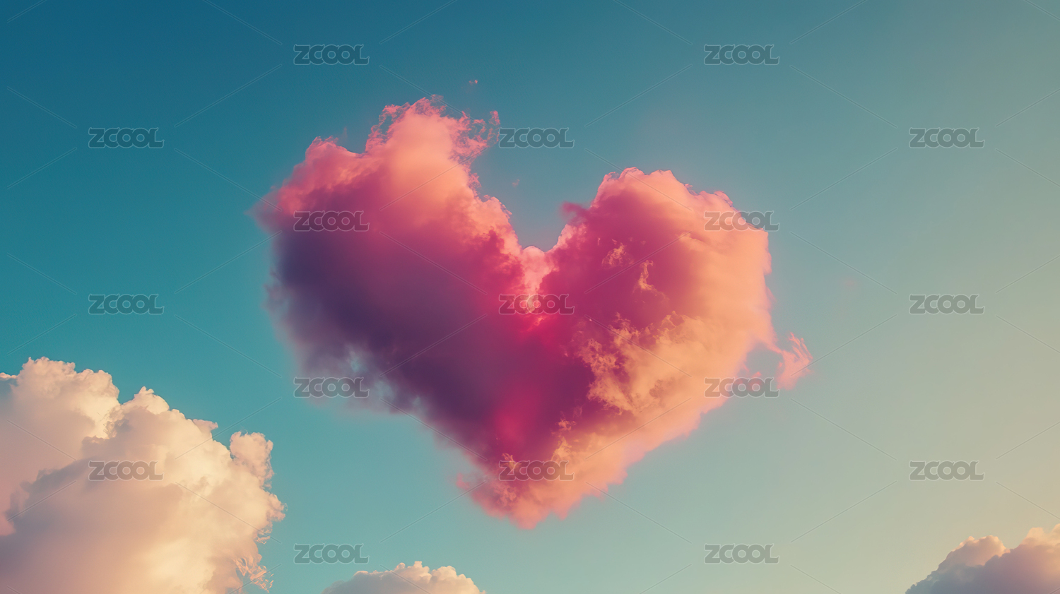 蓝色,天空,渐变,心形,蓝天,粉色,主体,白云,云,漂浮