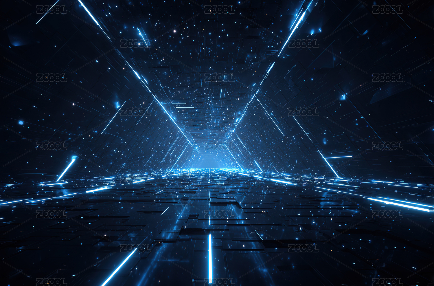蓝色光束构成的未来隧道