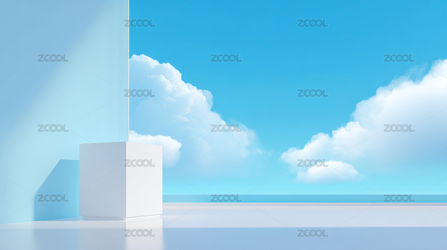 立方体,天空,云朵,蓝色,白色,地面,几何,简约,梦幻