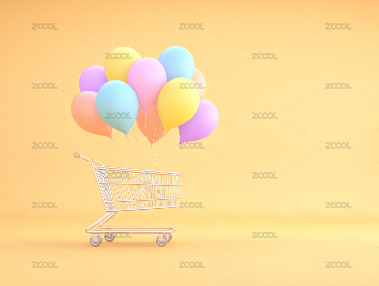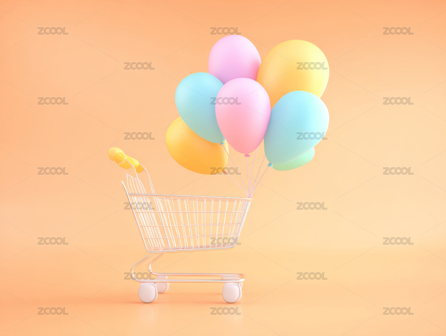 购物车,气球,橙色,背景,彩色,悬浮,创意,设计,欢乐