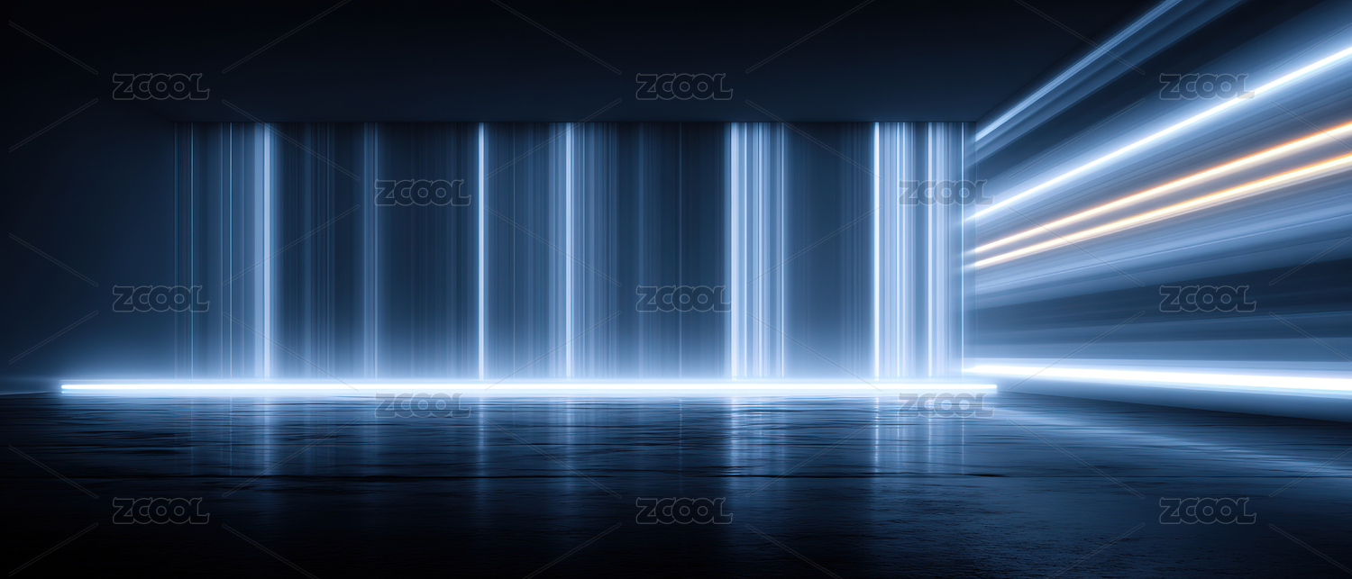 蓝色光束照亮的未来空间