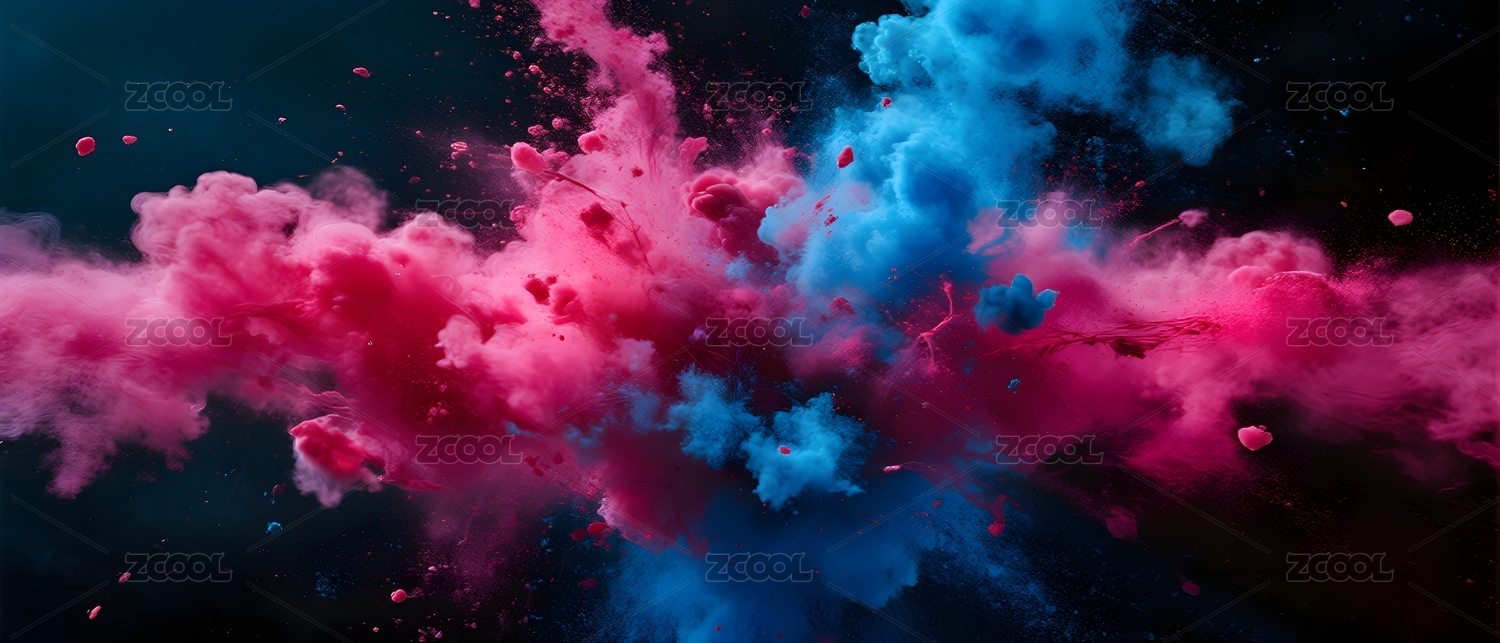 抽象彩色粉尘在纯色背景下爆炸粉尘喷溅背景