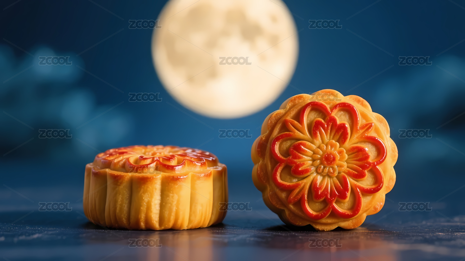粉色,背景,模糊,花朵,满月,月饼,节日,装饰,金黄色,棕色