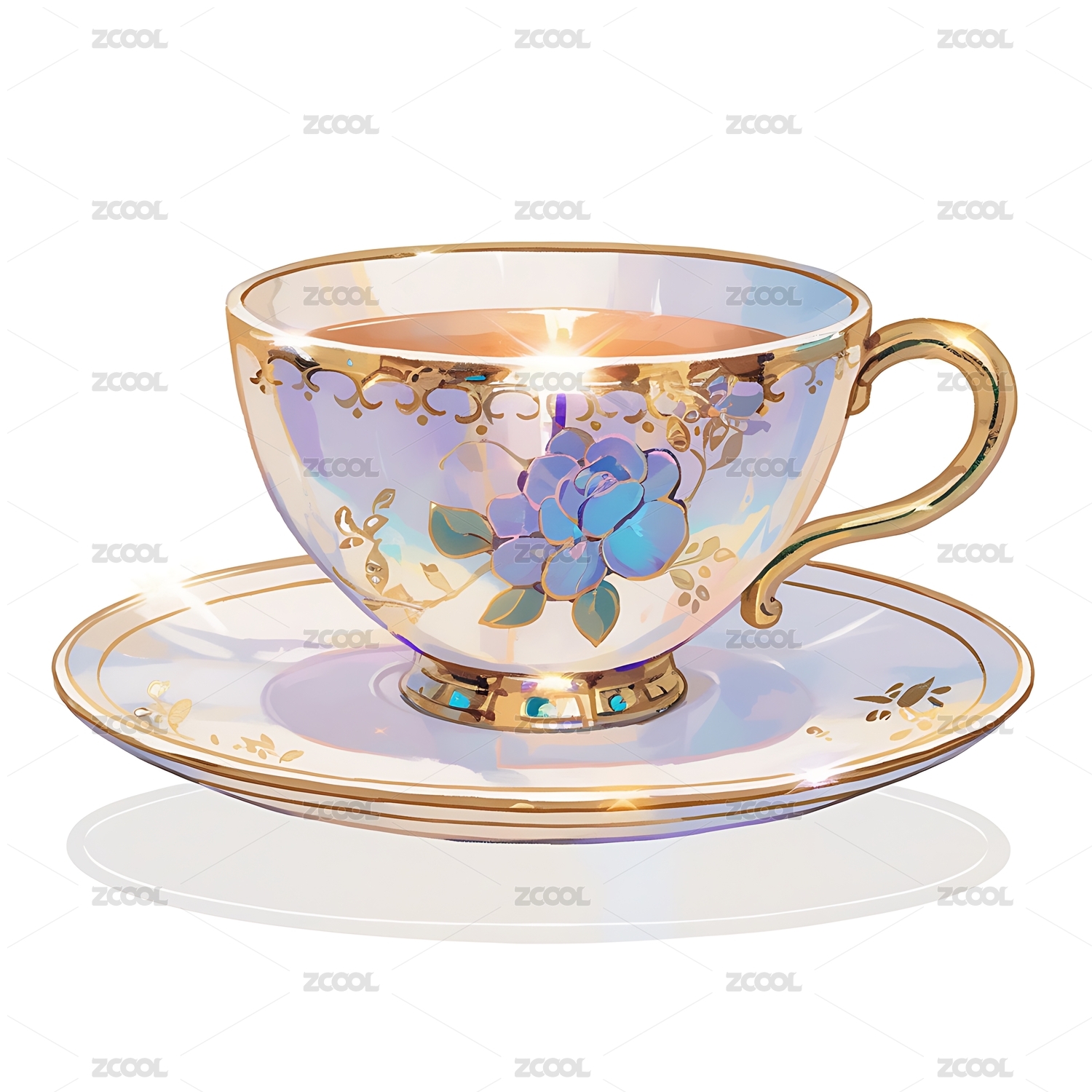 插画,茶杯,金纹,华丽,手绘,艺术,复古,精致,奢华,装饰