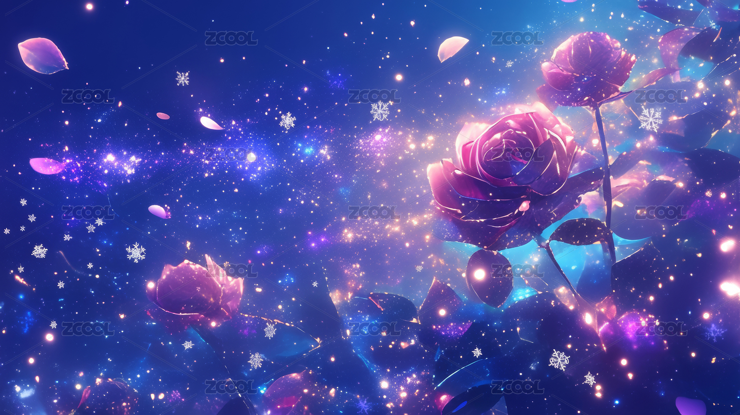 清新唯美玫瑰花粉色浪漫爱情花卉背景插画