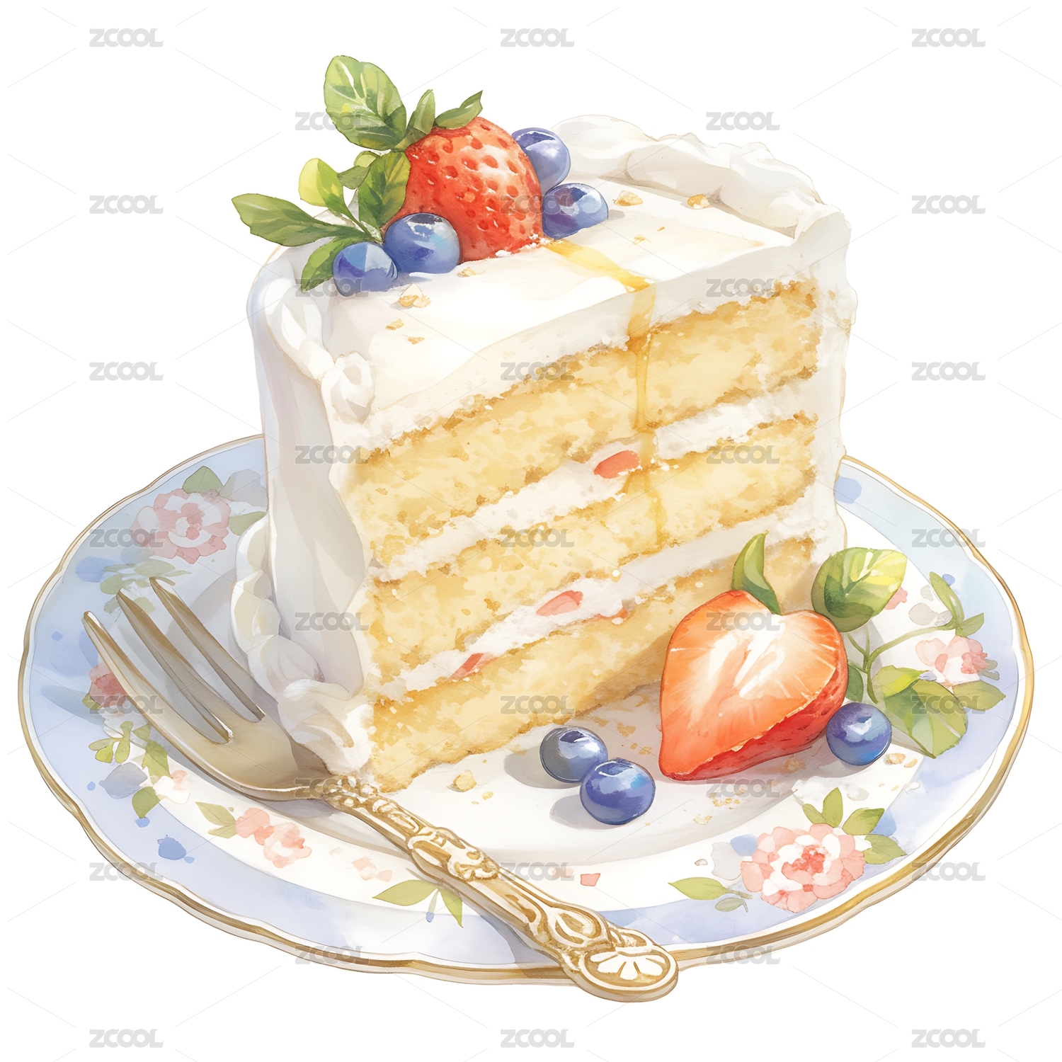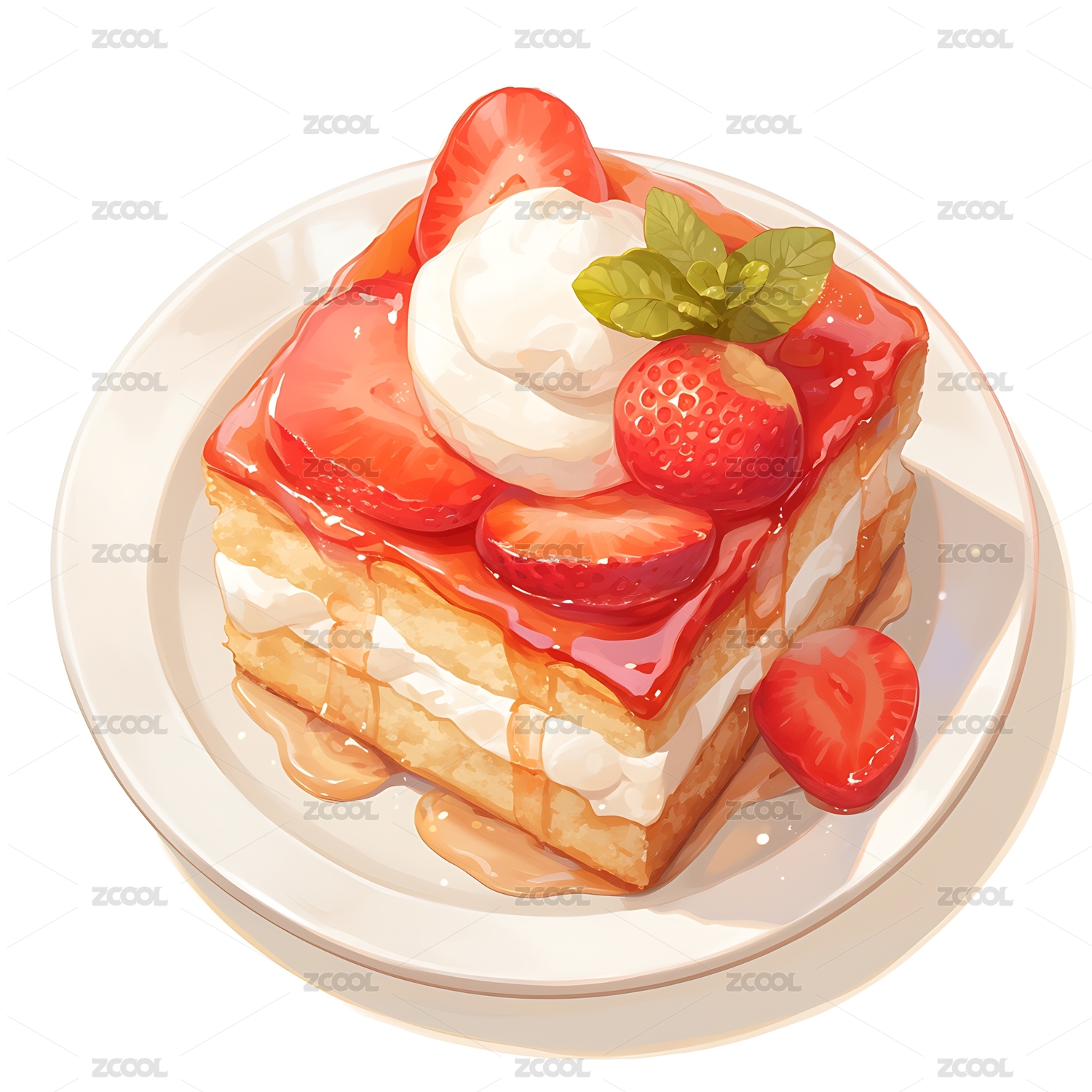 蛋糕,插画,草莓,奶油,切片,手绘,美食,甜品,可爱,艺术