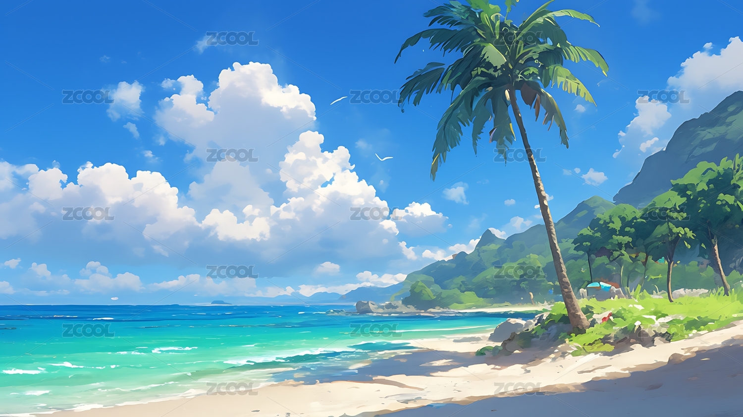 日漫风格的夏日海岸风光