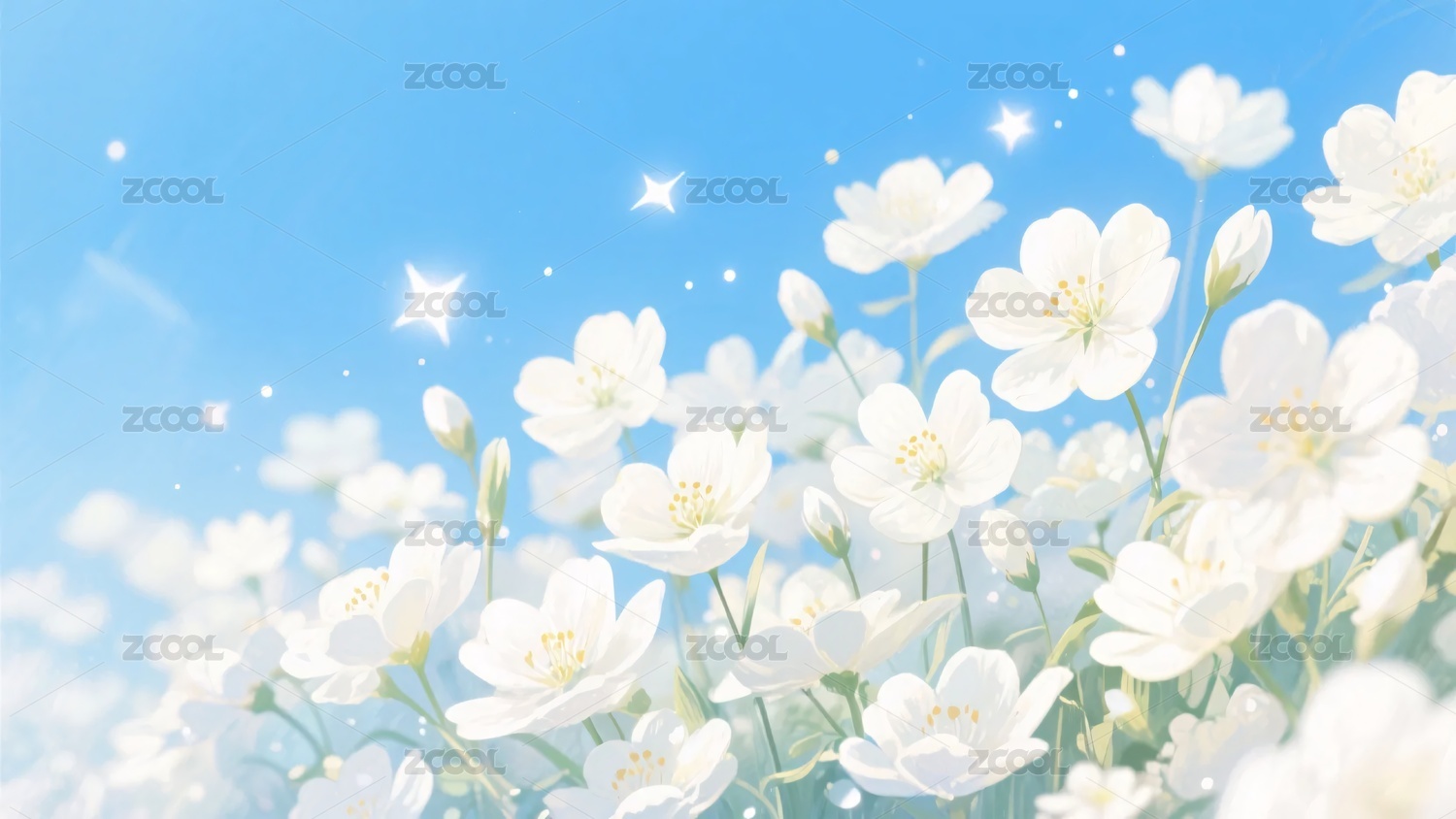 花,壁纸,插画,花海,蓝天,风景,清新,治愈,自然,色彩